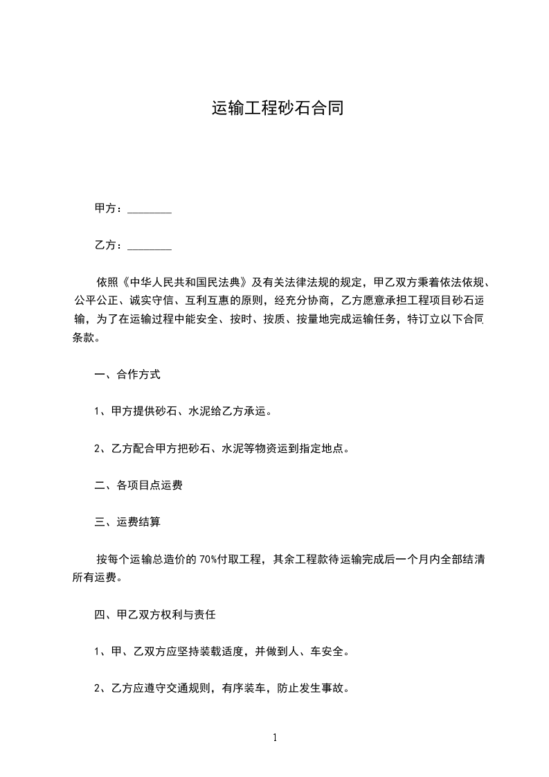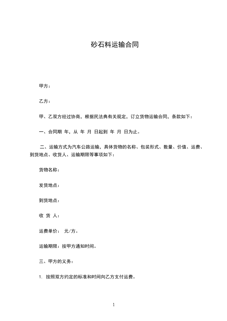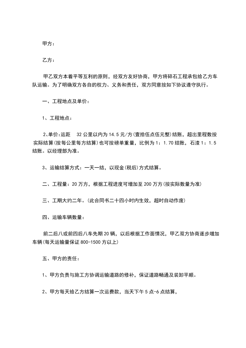 在施工期间,乙方司机应服从甲方施工管理员的安排。把砂石按时按量地运输到甲方指定的场地。如未按甲方安排进砂石或不按指定场地堆放则甲方有权拒绝签收。