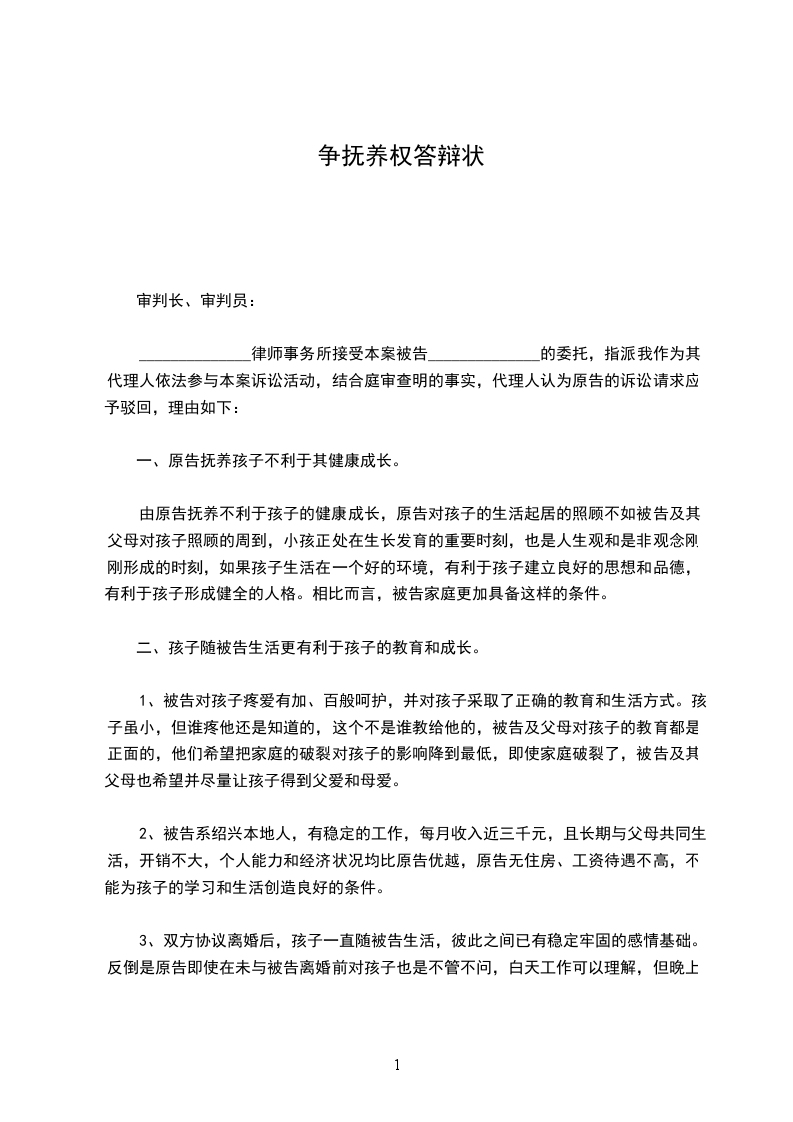 答辩人:_________________公司有限公司地址:________________
