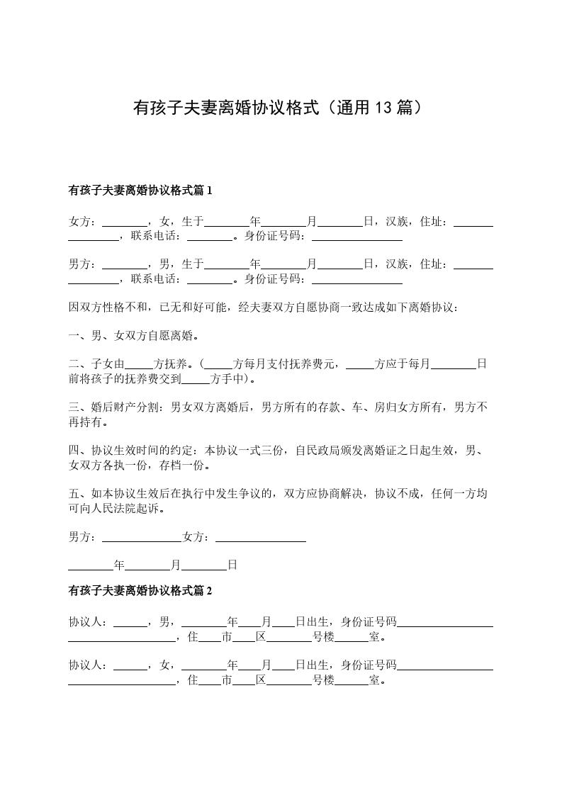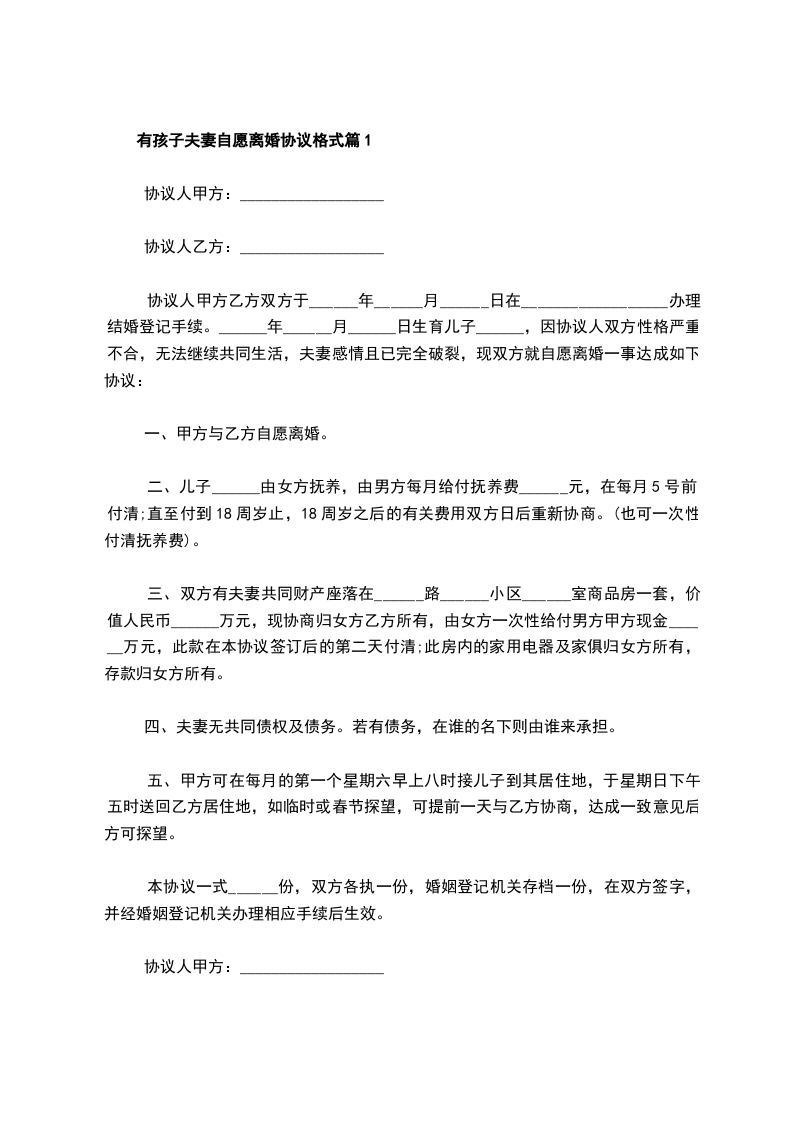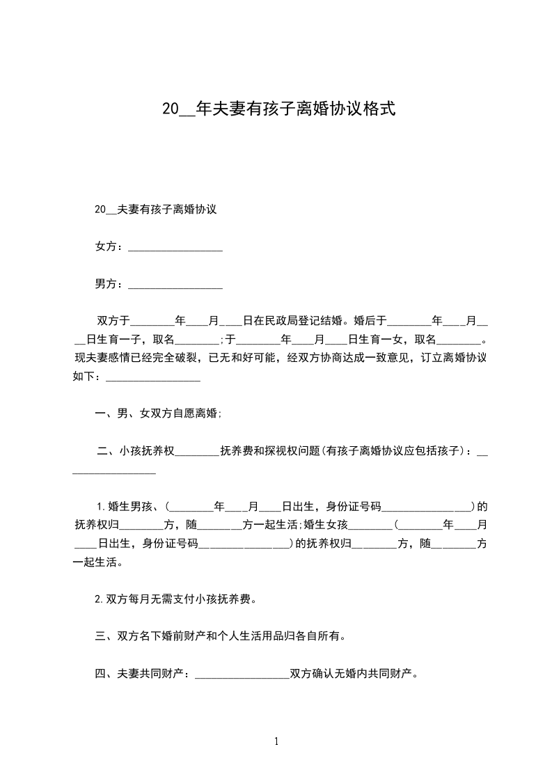 20__夫妻有孩子离婚协议