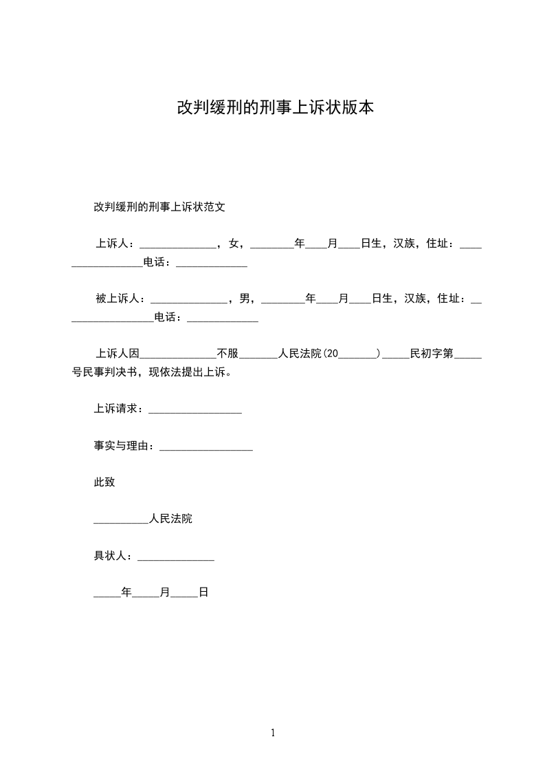改判无罪刑事上诉状参考上述