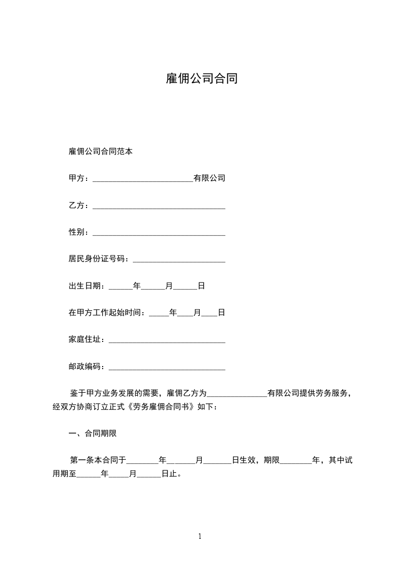 雇佣公司合同范本