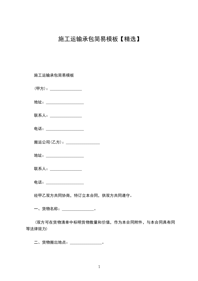 施工运输承包简易模板