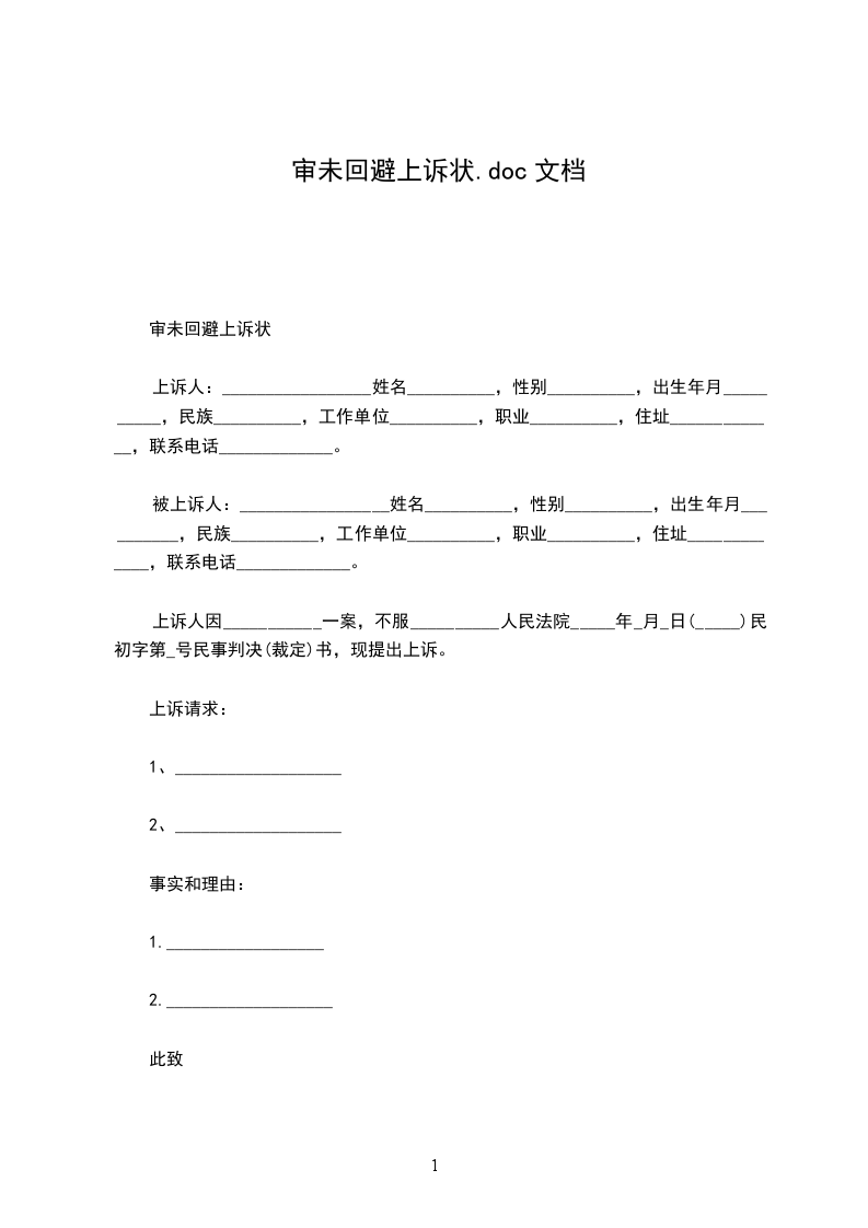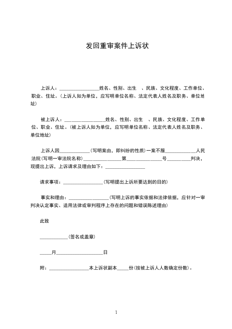 上诉人:_________________姓名__________,性别__________,出生年月__________,民族__________,工作单位__________,职业__________,住址_____________,联系电话_____________。