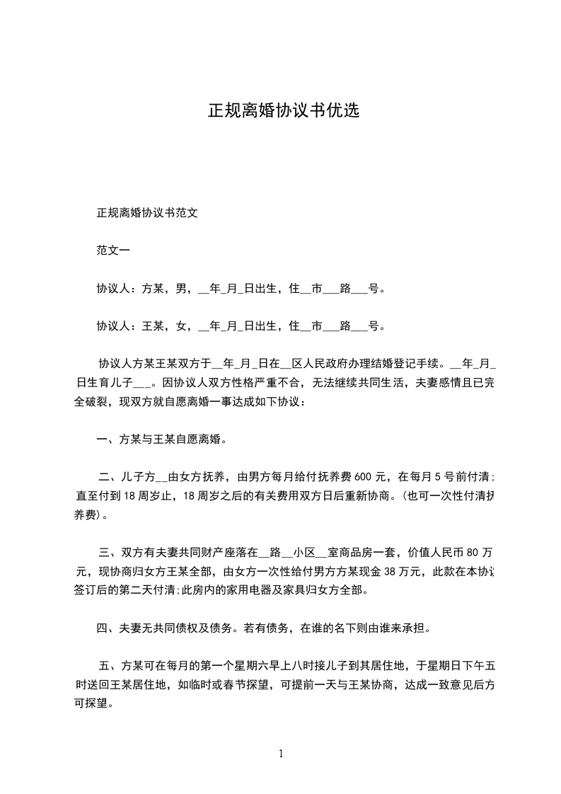协议人方某王某双方于__年_月_日在__区人民政府办理结婚登记手续。__年_月_日生育儿子___。因协议人双方性格严重不合,无法继续共同生活,夫妻感情且已完全破裂,现双方就自愿离婚一事达成如下协议: