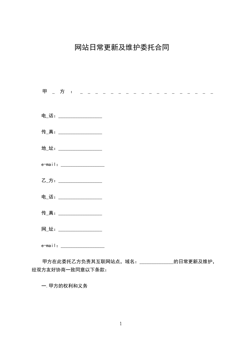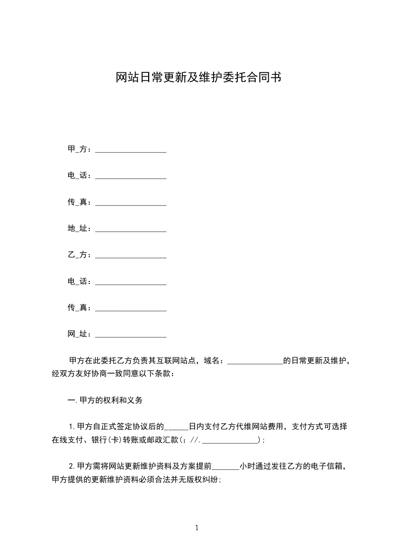 甲方在此委托乙方负责其互联网站点,域名:______________的日常更新及维护,经双方友好协商一致同意以下条款: