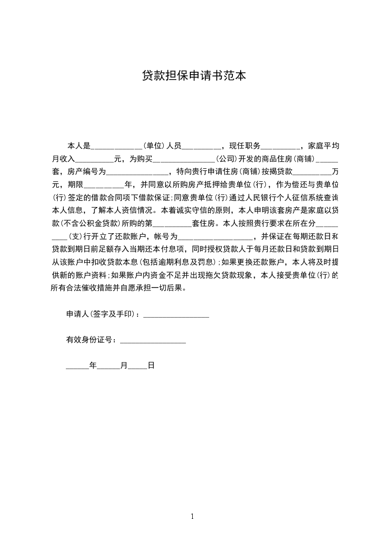 贷款担保申请书范文