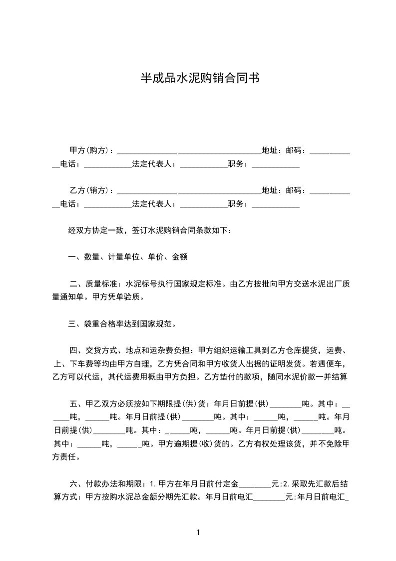 二、质量标准:水泥标号执行国家规定标准。由乙方按批向甲方交送水泥出厂质量通知单。甲方凭单验质。