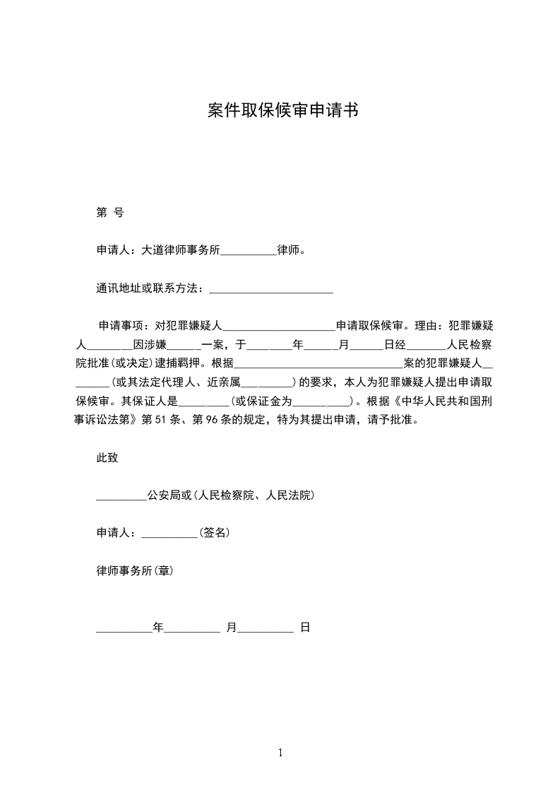 依法对____________申请取保候审____________于____________年____________月____________日因涉嫌伪造、变造、买卖国家机关公文、证件、印章一案被贵局刑事拘留,现羁押于____________