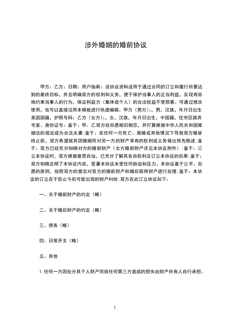原告:_________________,女,______国籍,_____族,__________年______月______日出生,身份证号码:______________住址:_____________。