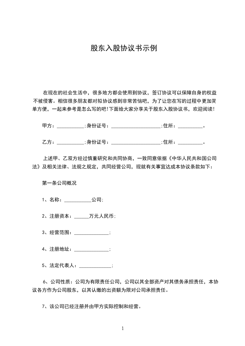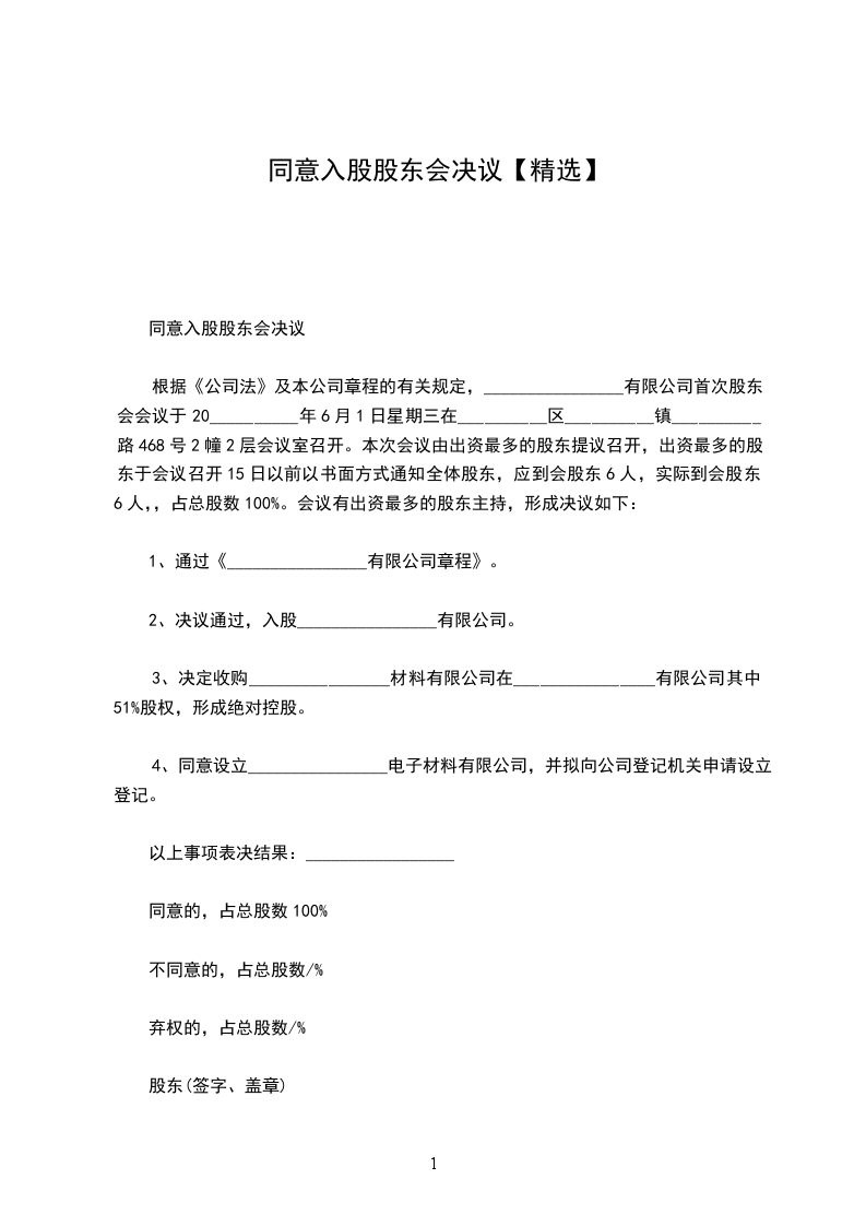 同意入股股东会决议范文