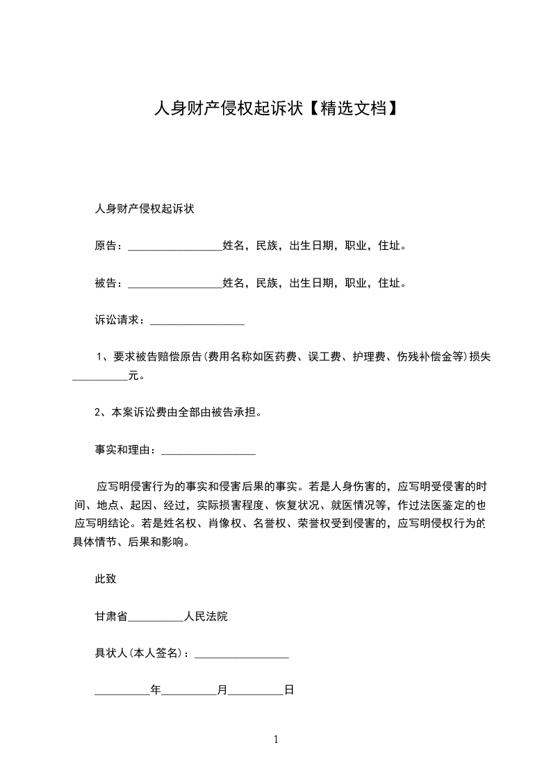 人身财产侵权起诉状