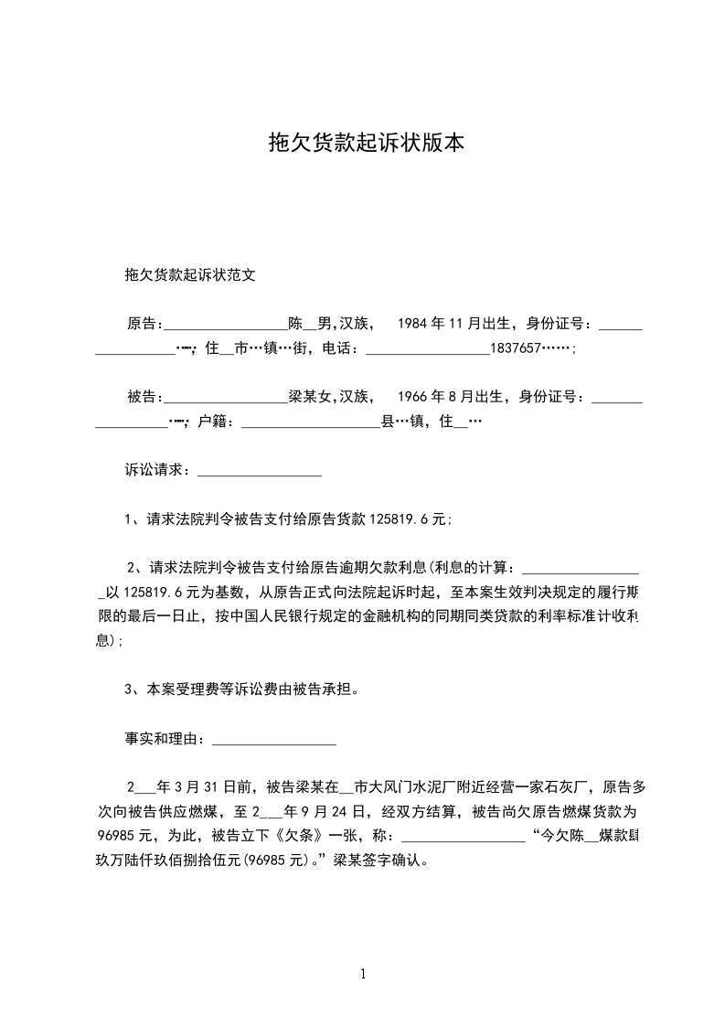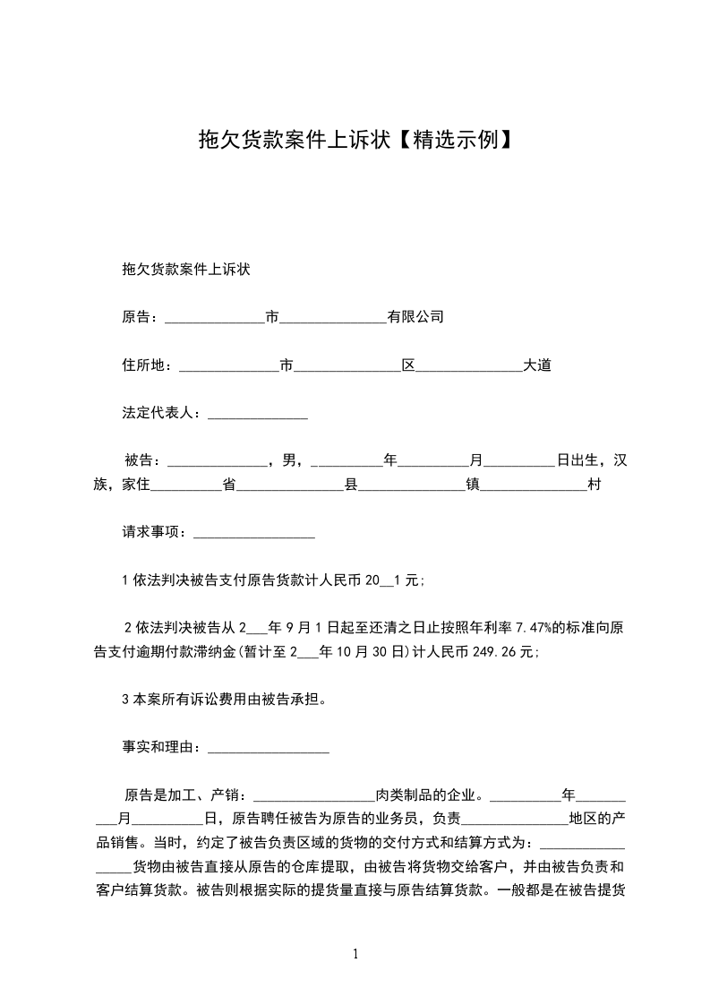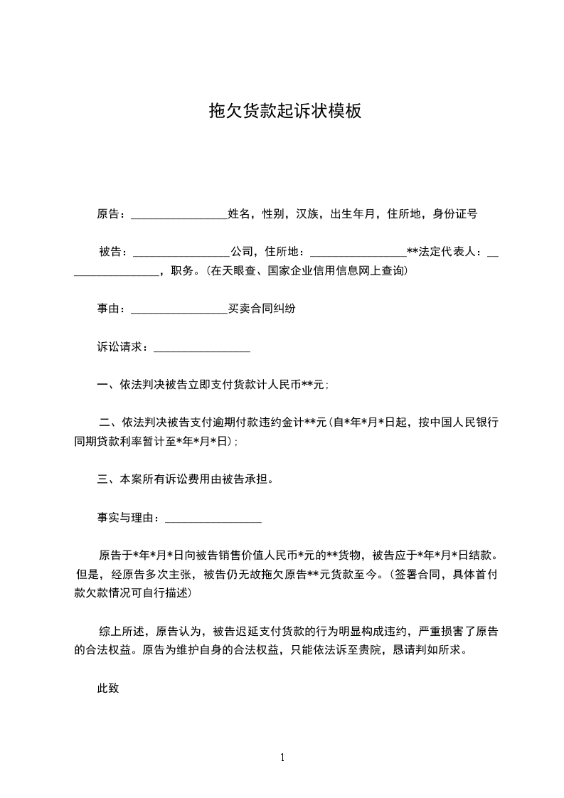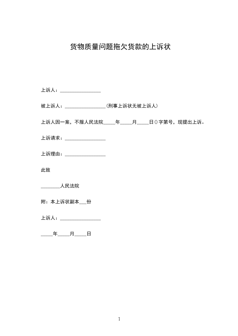 拖欠货款上诉状