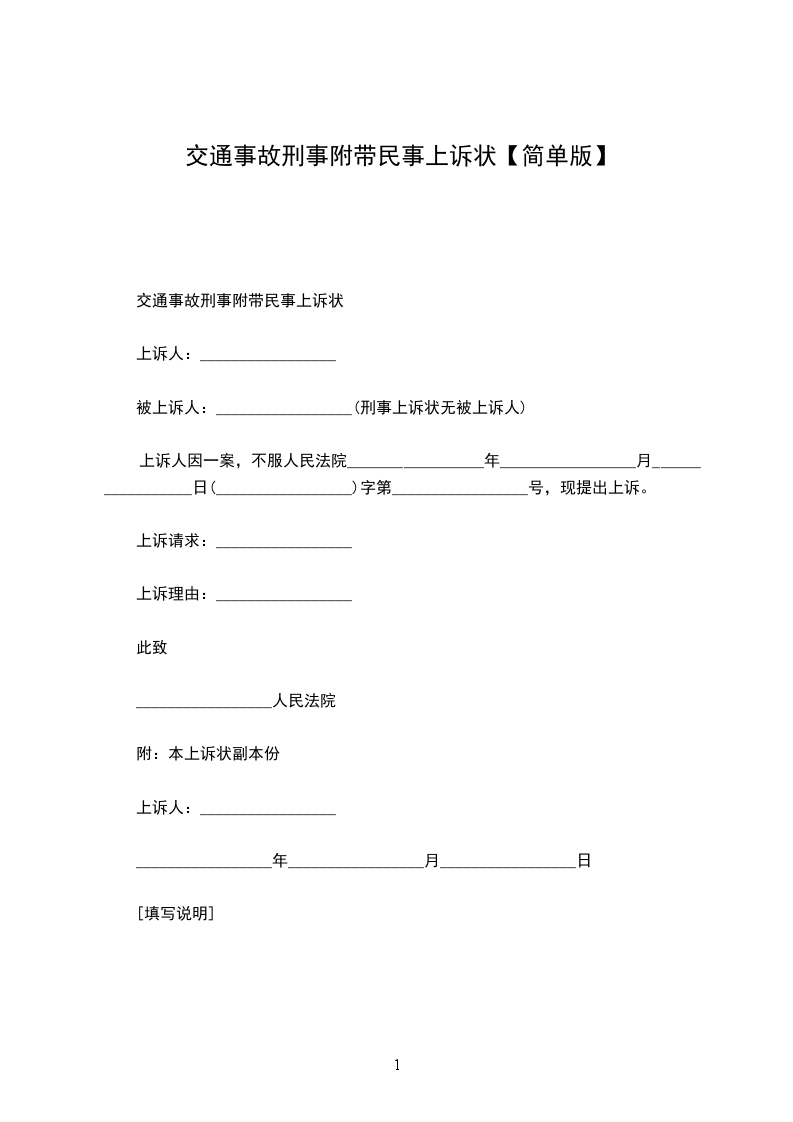 交通事故刑事附带民事上诉状