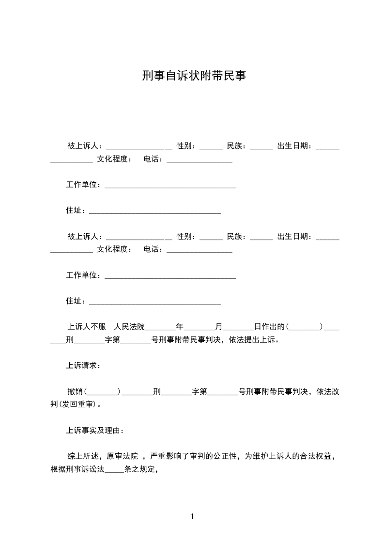 被上诉人:_________________(刑事上诉状无被上诉人)