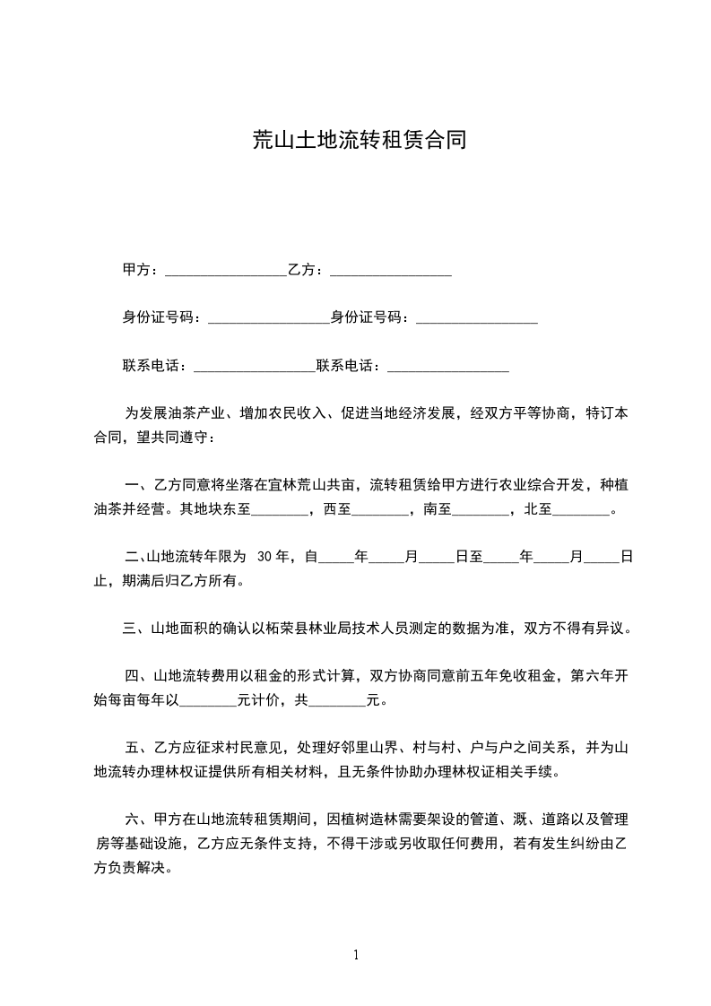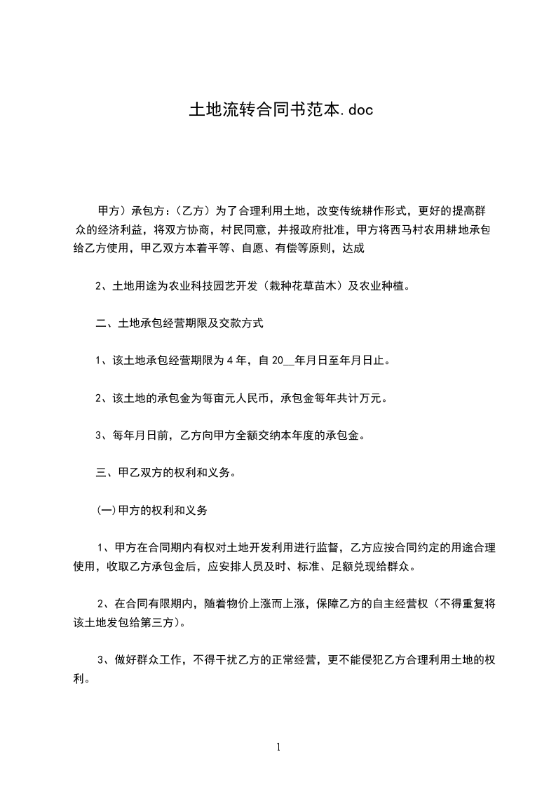 土地流转租赁合同