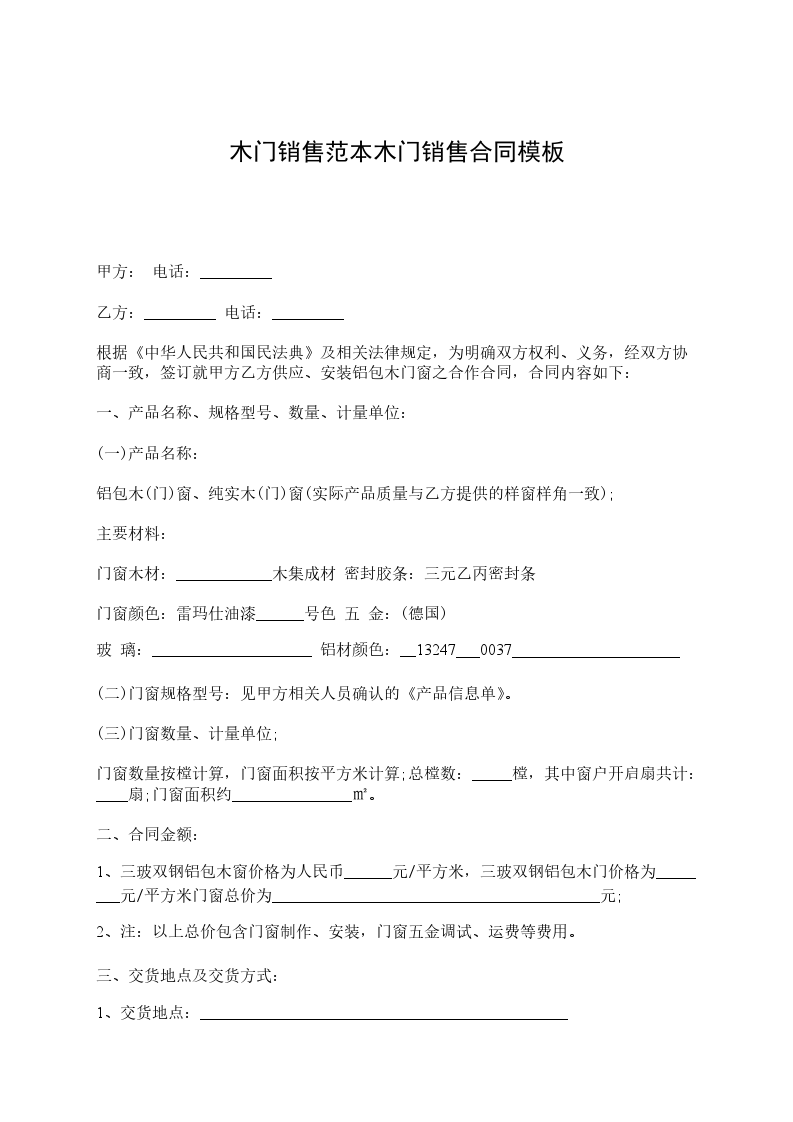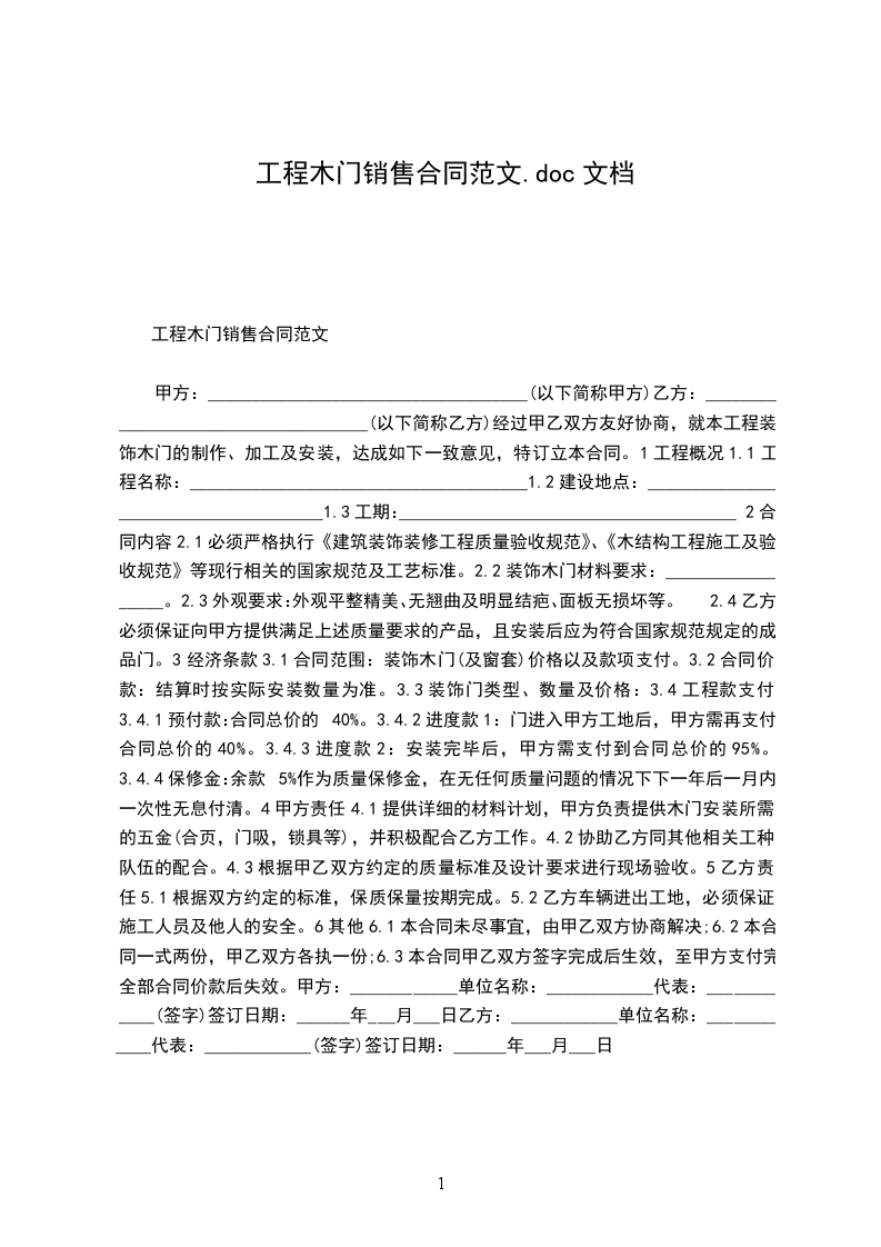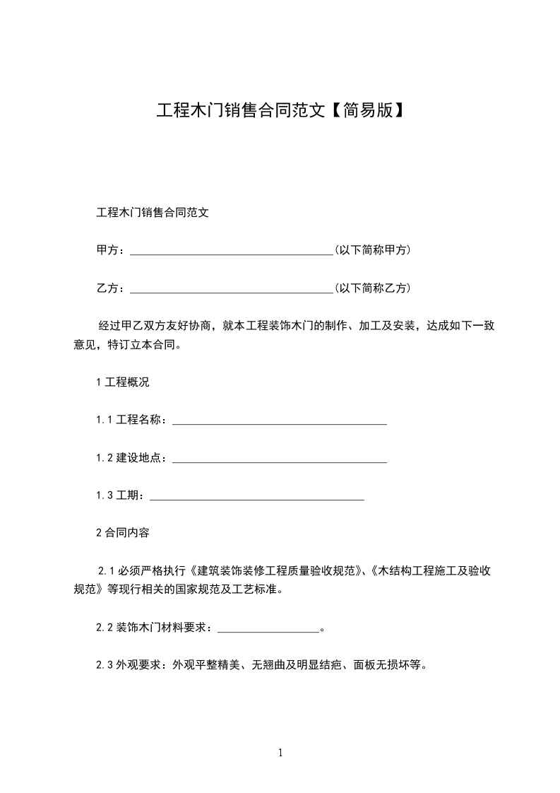 工程木门销售合同