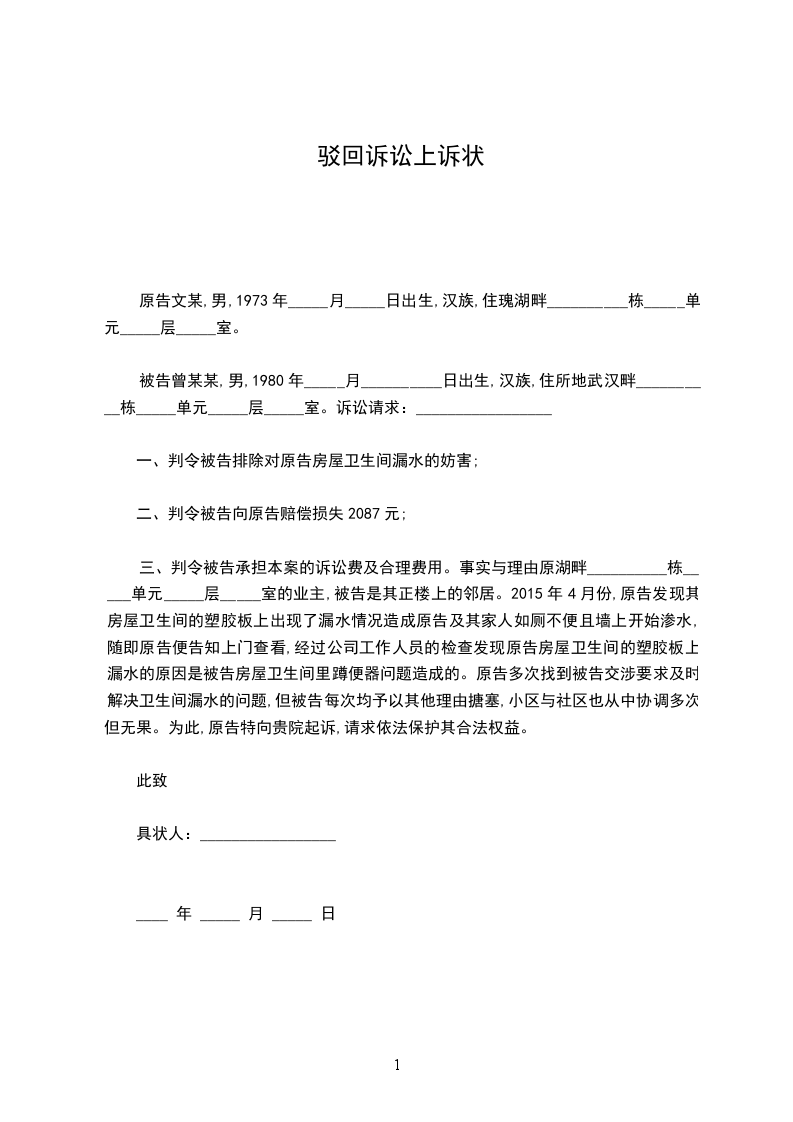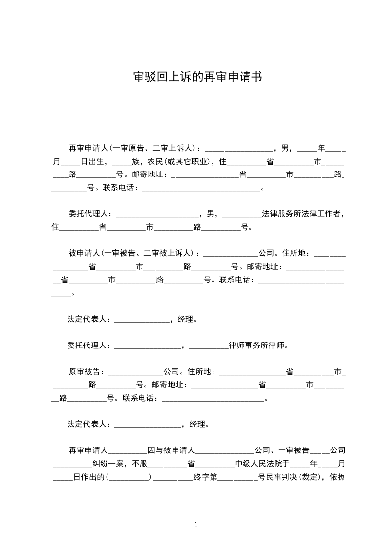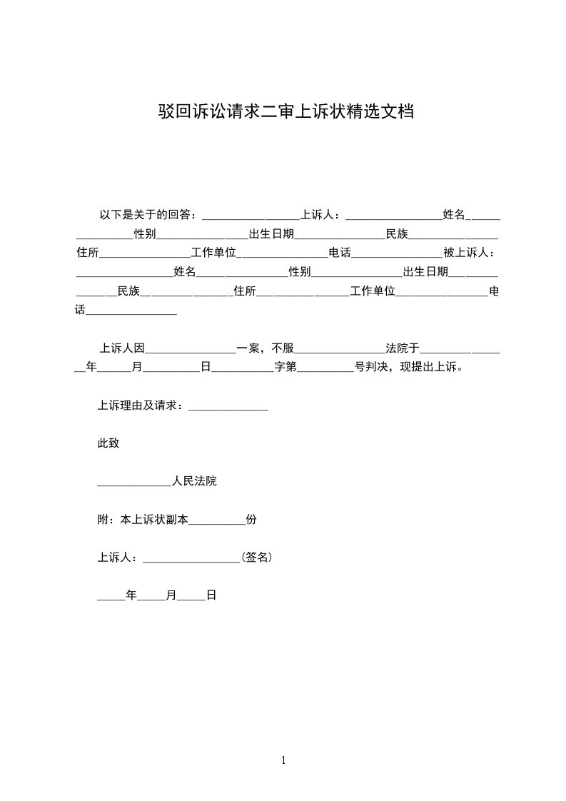 审被驳回的上诉状范文