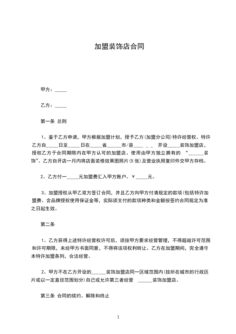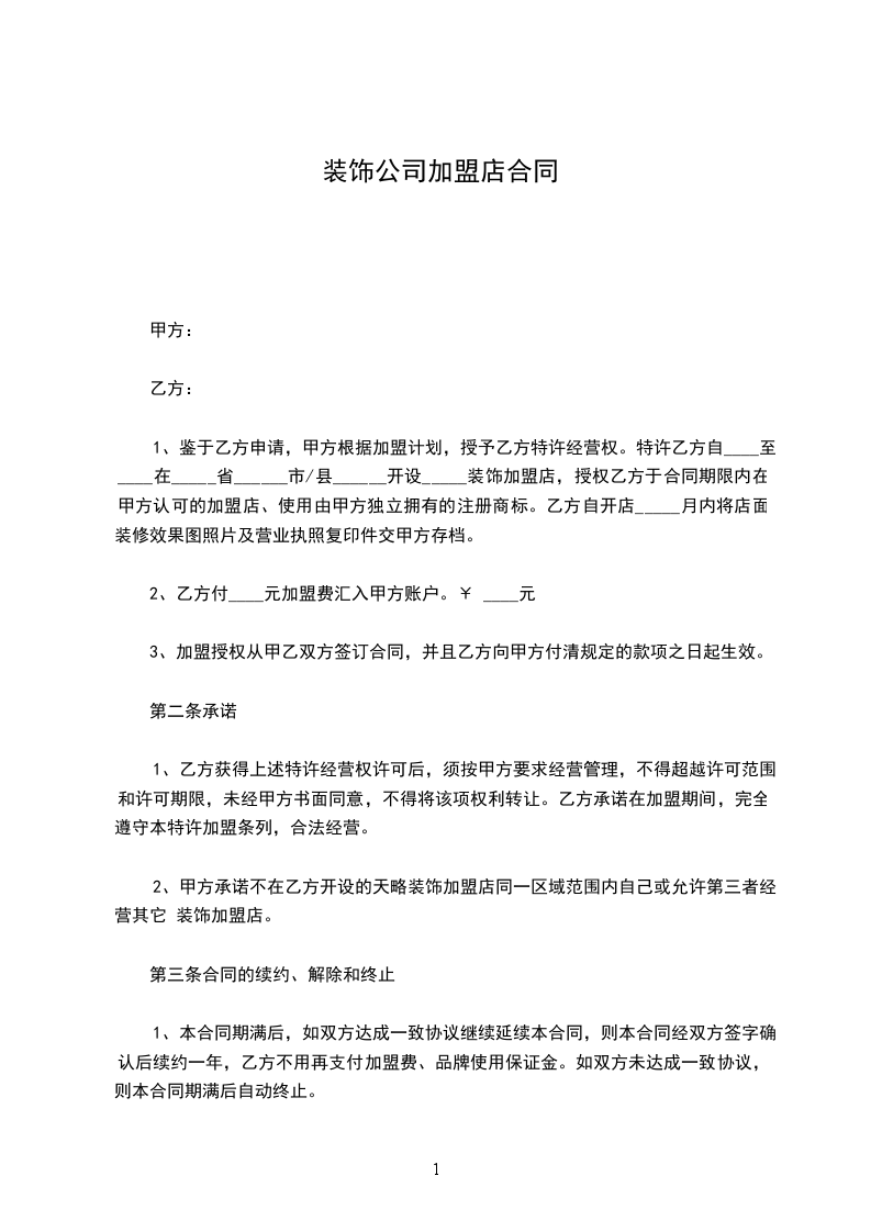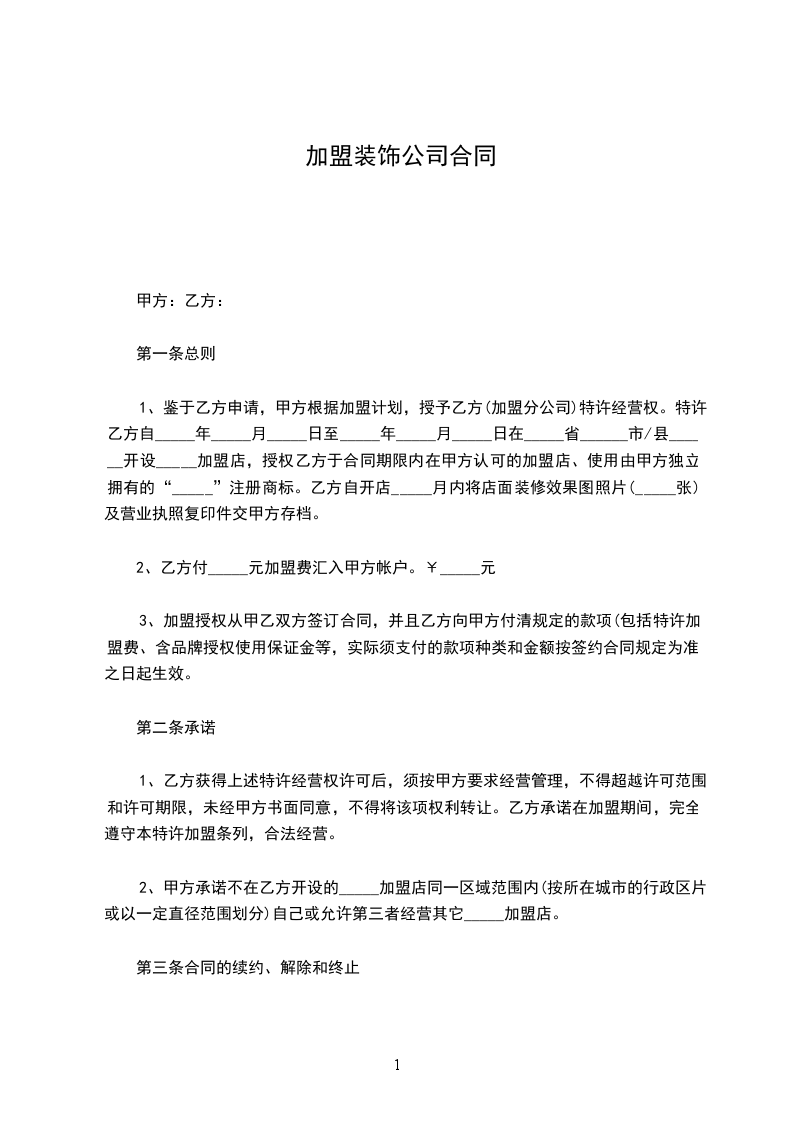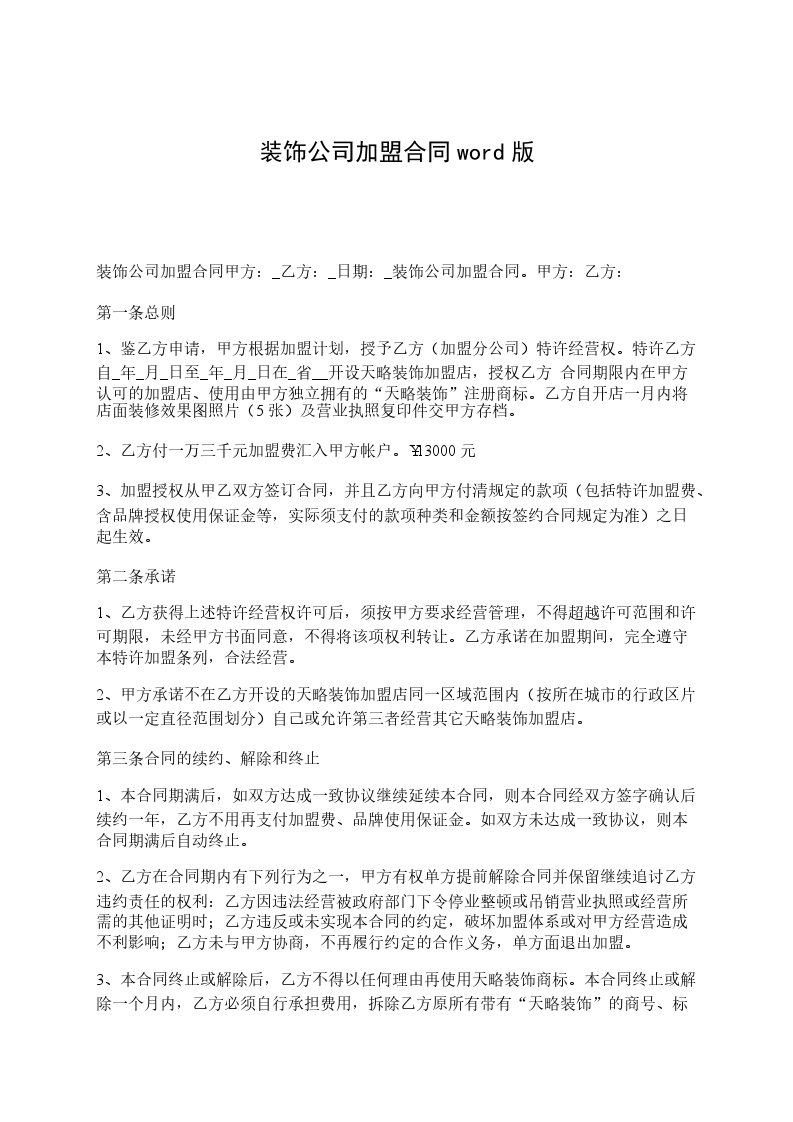 装饰公司加盟的合同范本