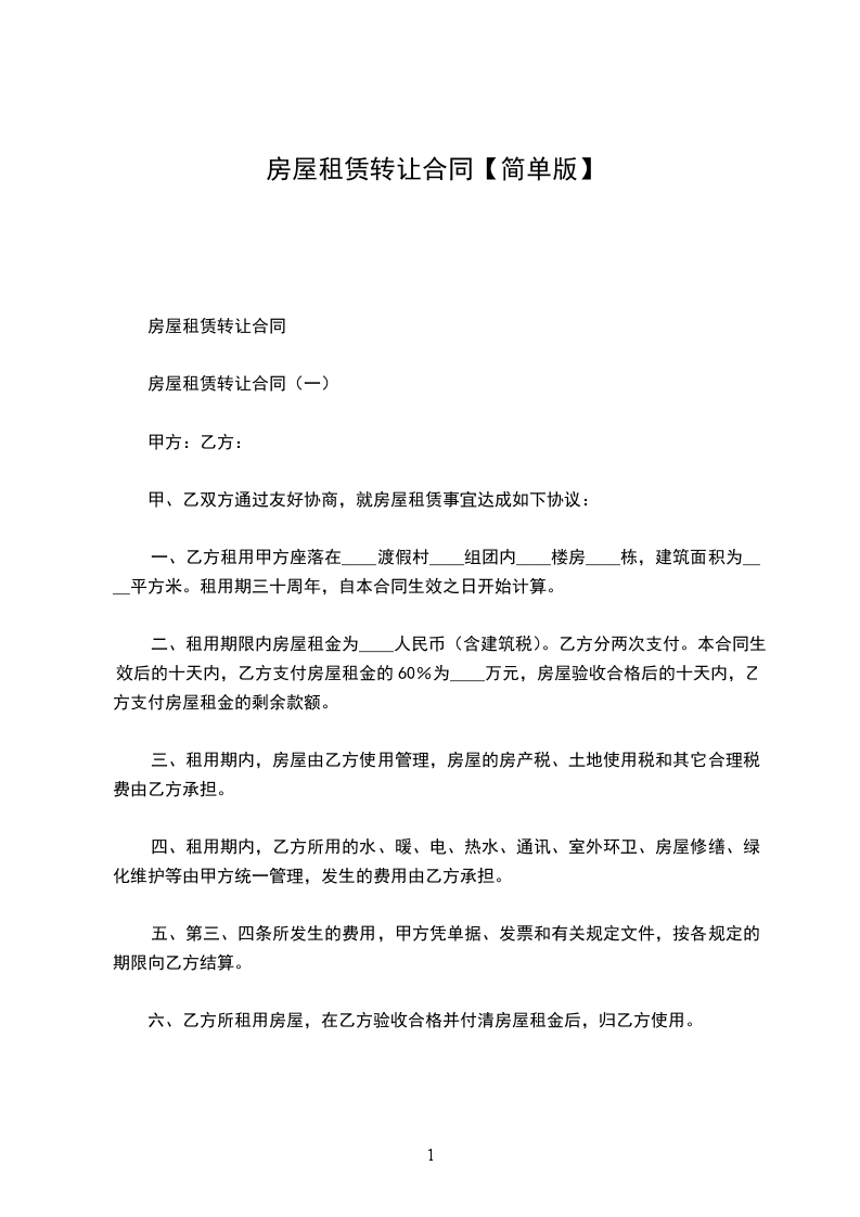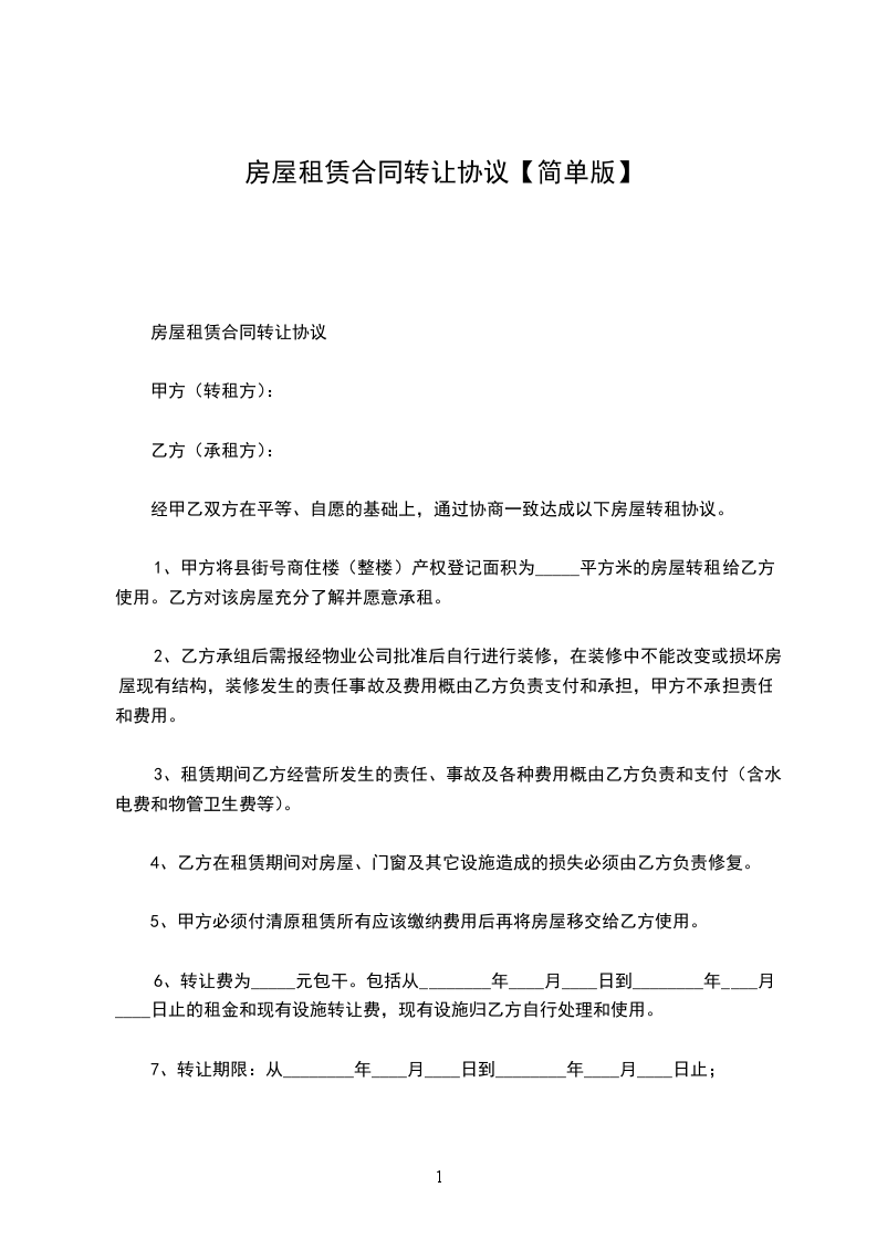 房屋租赁合同转让