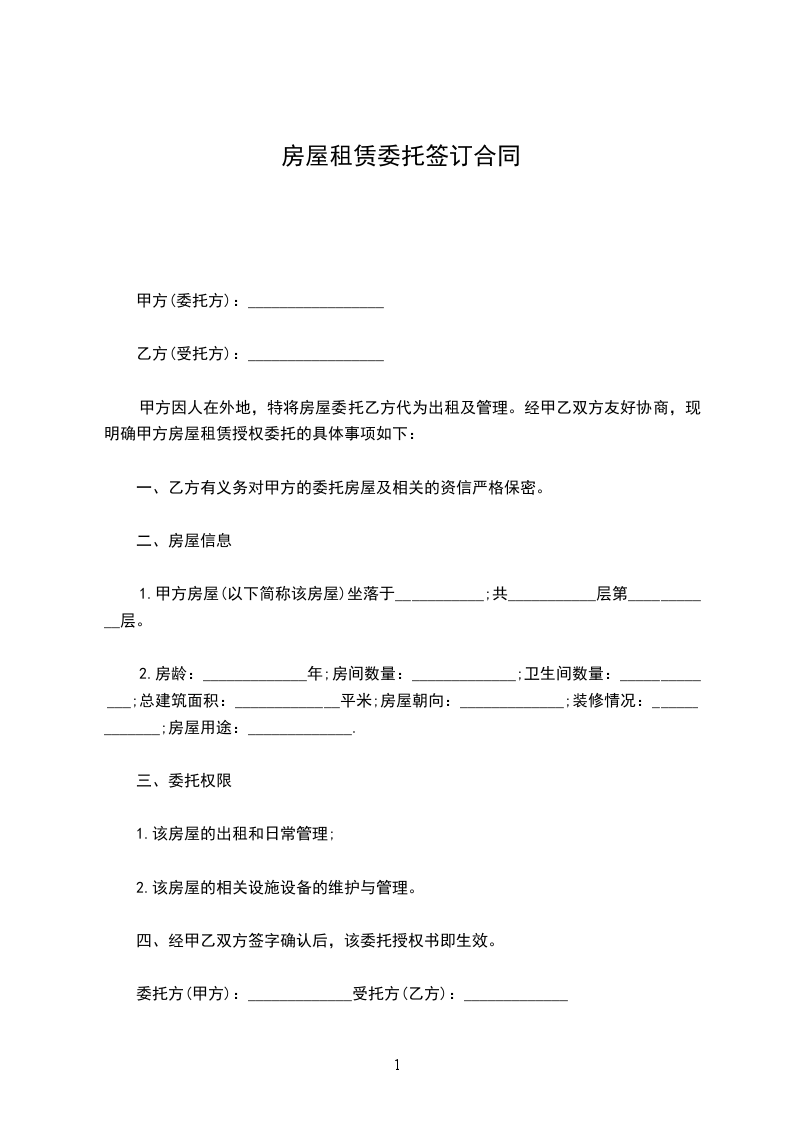 甲方因人在外地,特将房屋委托乙方代为出租及管理。经甲乙双方友好协商,现明确甲方房屋租赁授权委托的具体事项如下: