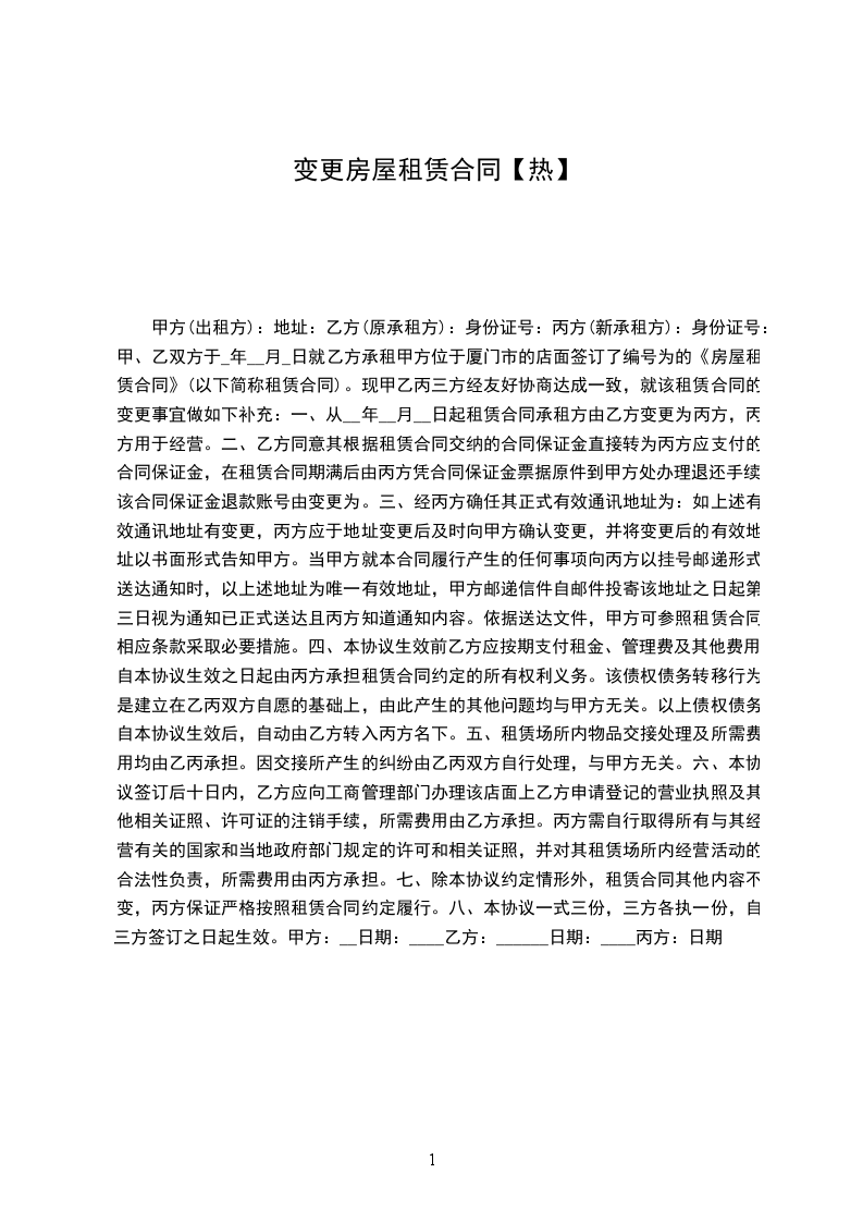 现甲乙丙三方经友好协商达成一致,就该租赁合同的变更事宜做如下补充: