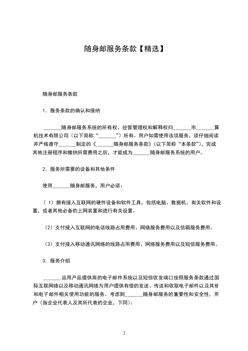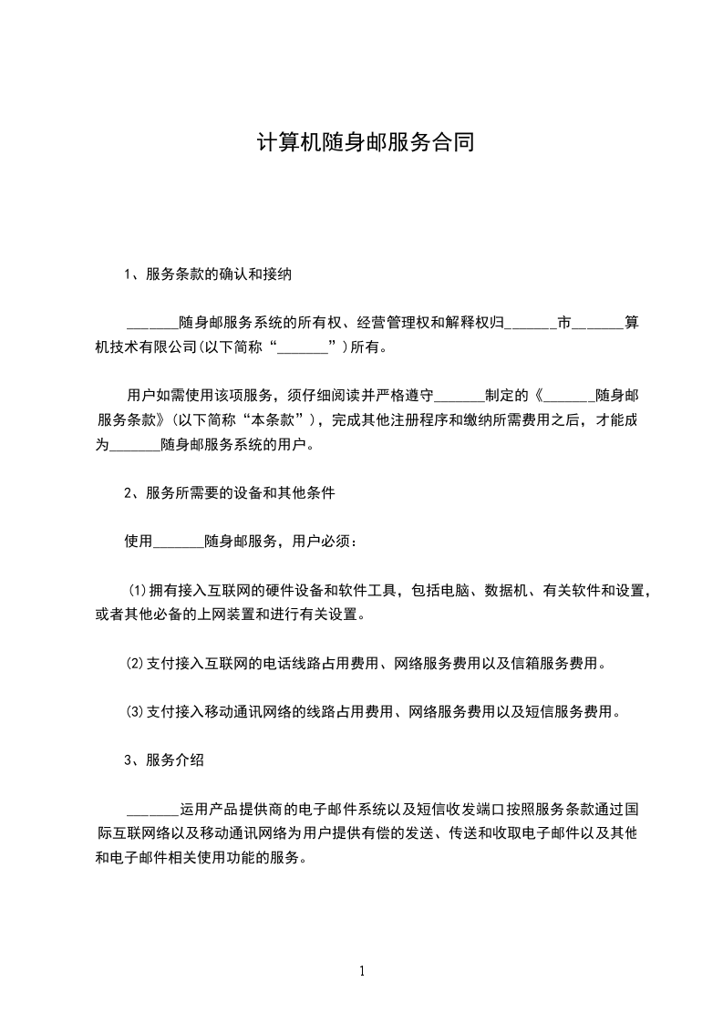 1.乙方提供以甲方申请域名为后缀,与手机绑定的随身邮服务。