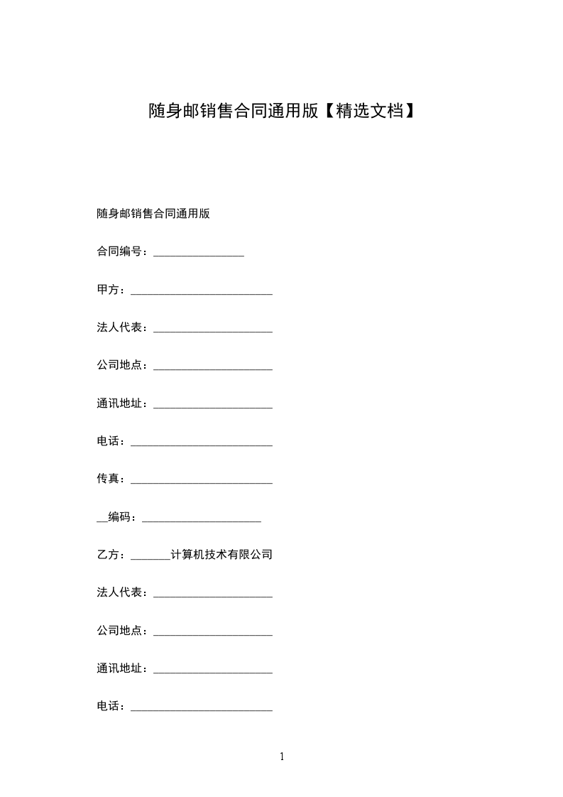 随身邮销售合同通用版