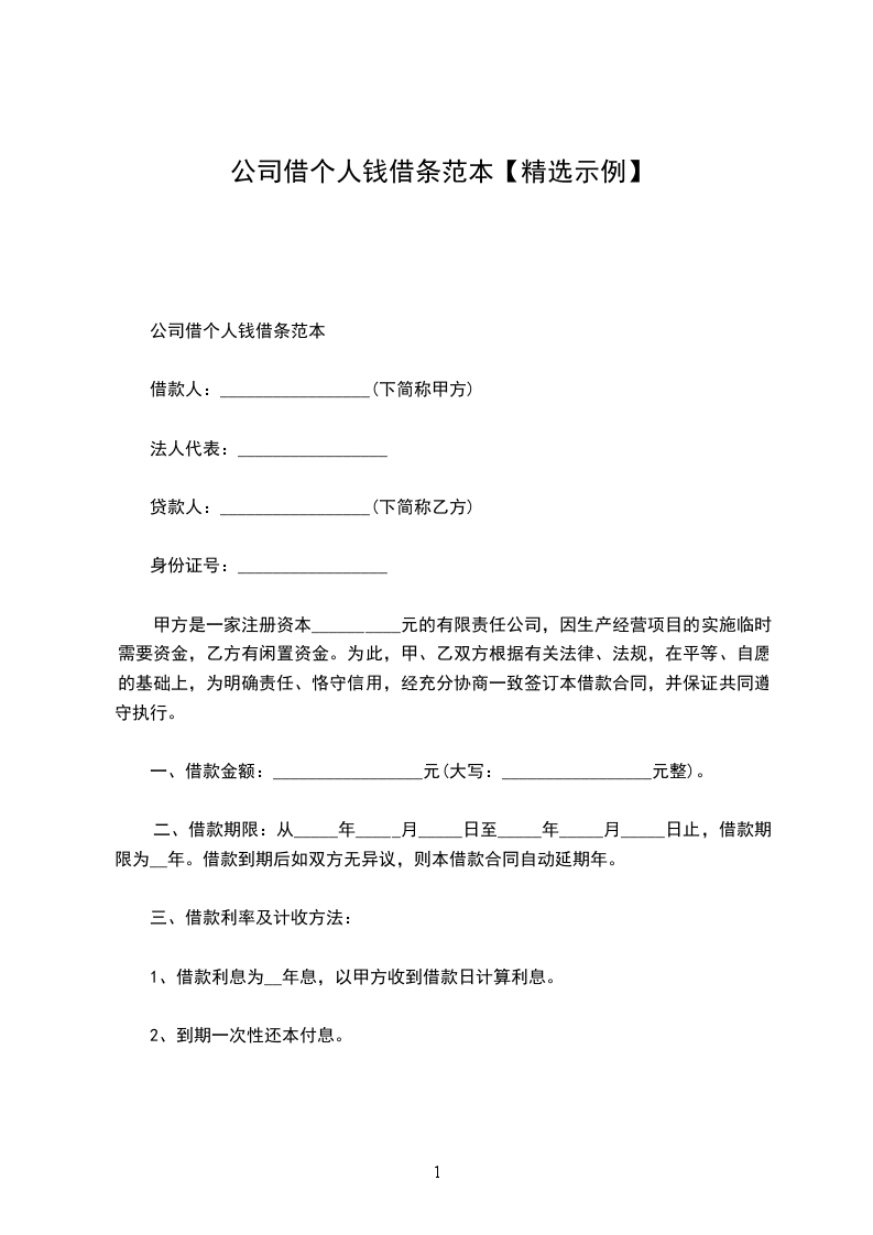 公司借个人钱借条范本