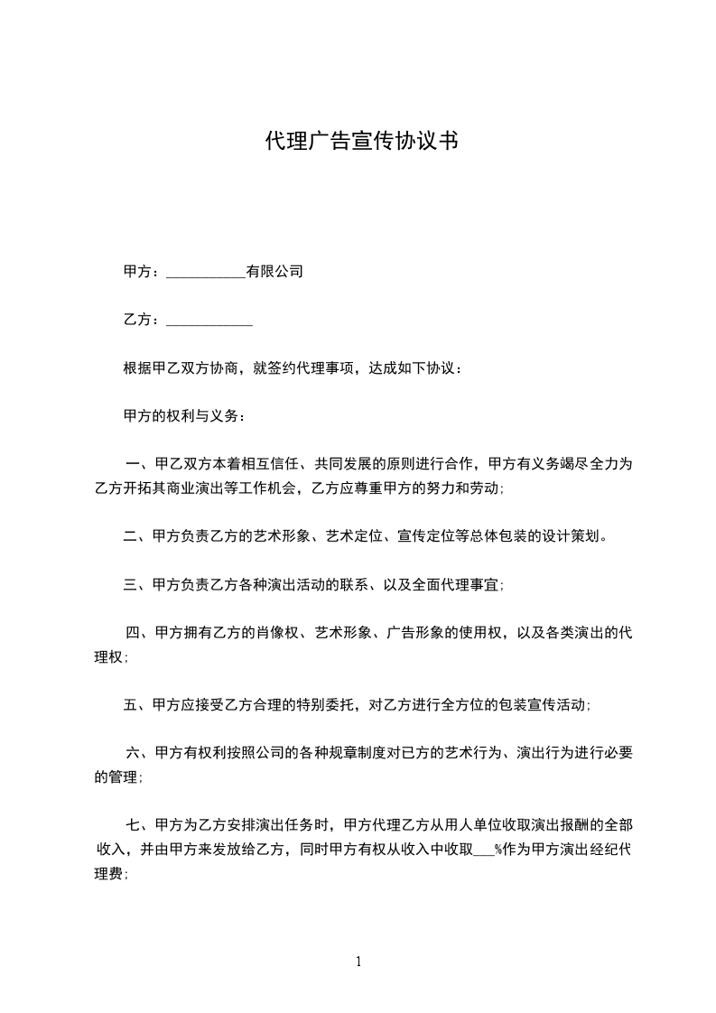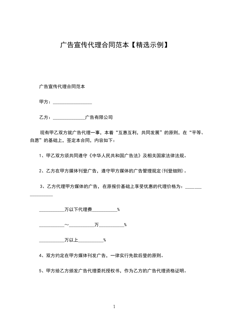 现有甲乙双方就广告代理一事,本着“互惠互利,共同发展”的原则,在“平等、自愿”的基础上,签定本合同,内容如下: