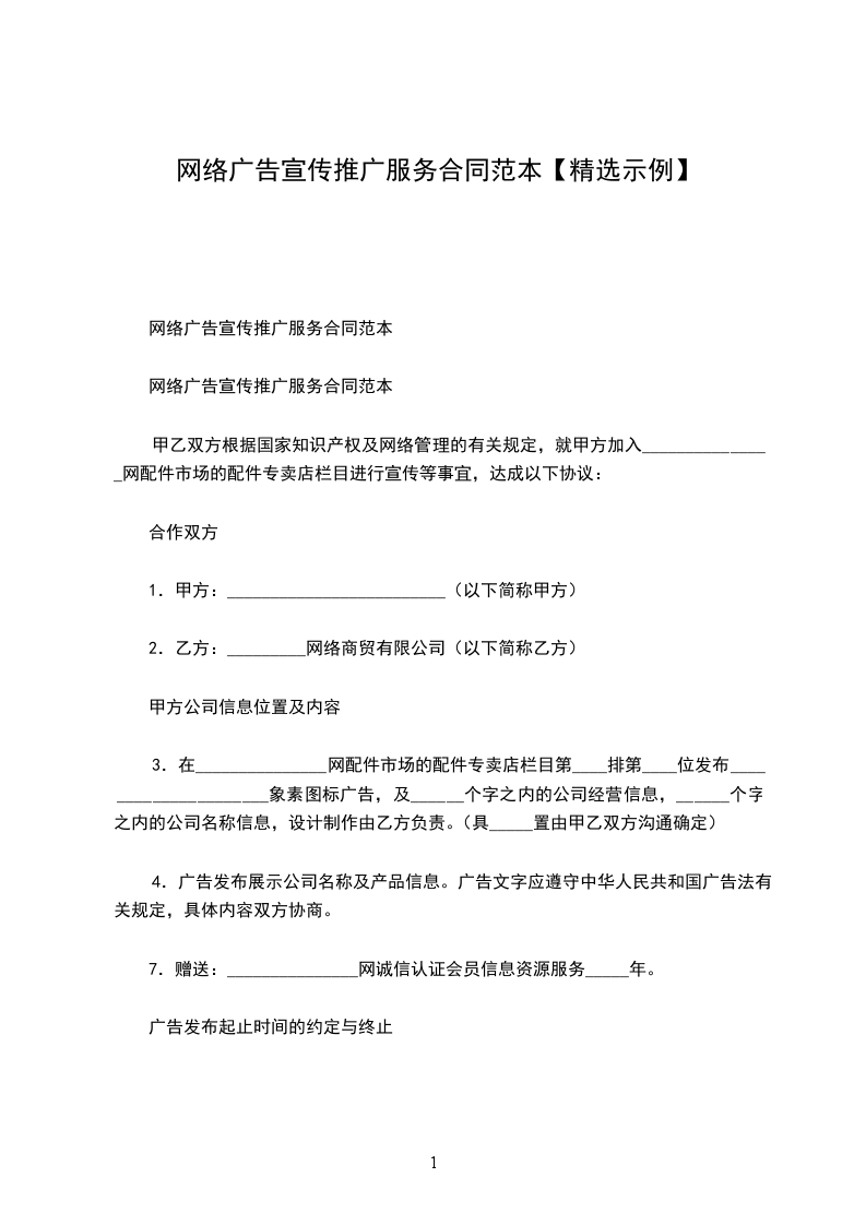 8、乙方广告客户实行会员制,在对会员报价时不得低于甲乙双方在本合同中约定的优惠价,若低于此优惠价,甲方有权拒绝刊登广告。