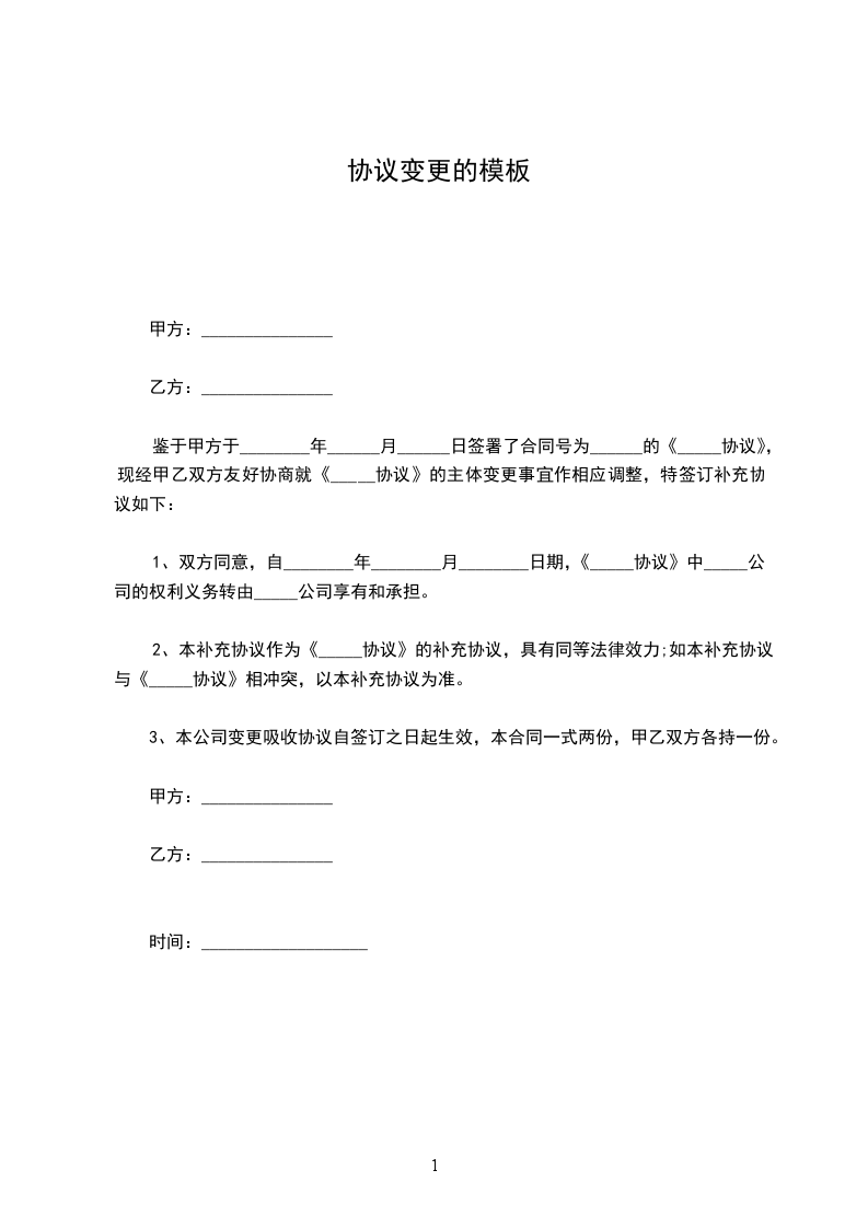 鉴于甲方于________年______月______日签署了合同号为______的《_____协议》,现经甲乙双方友好协商就《_____协议》的主体变更事宜作相应调整,特签订补充协议如下: