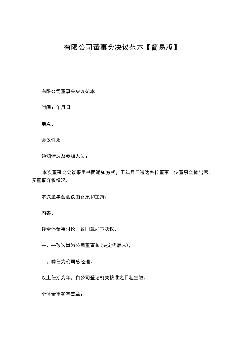 临时董事会决议范本新