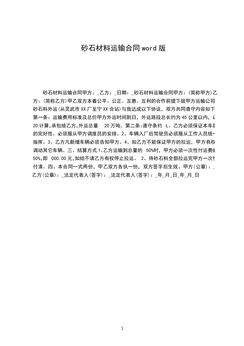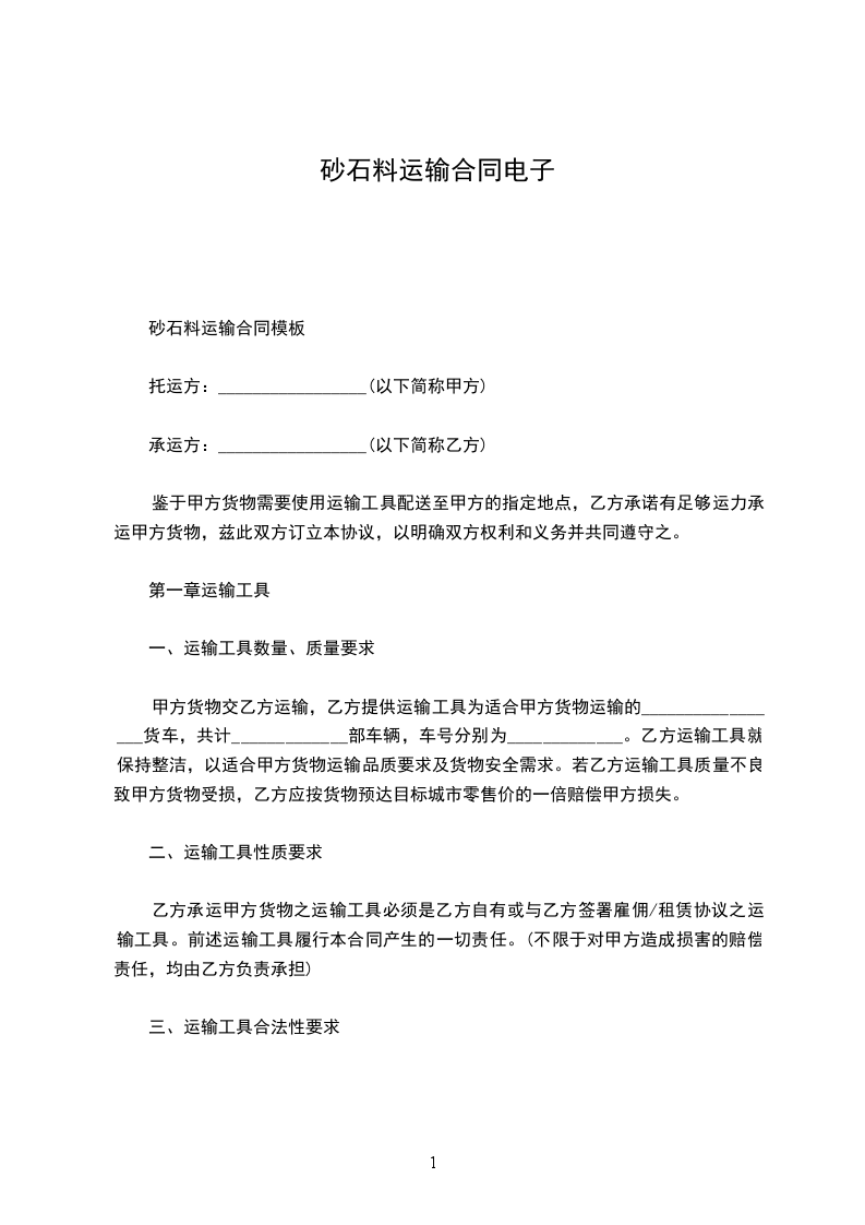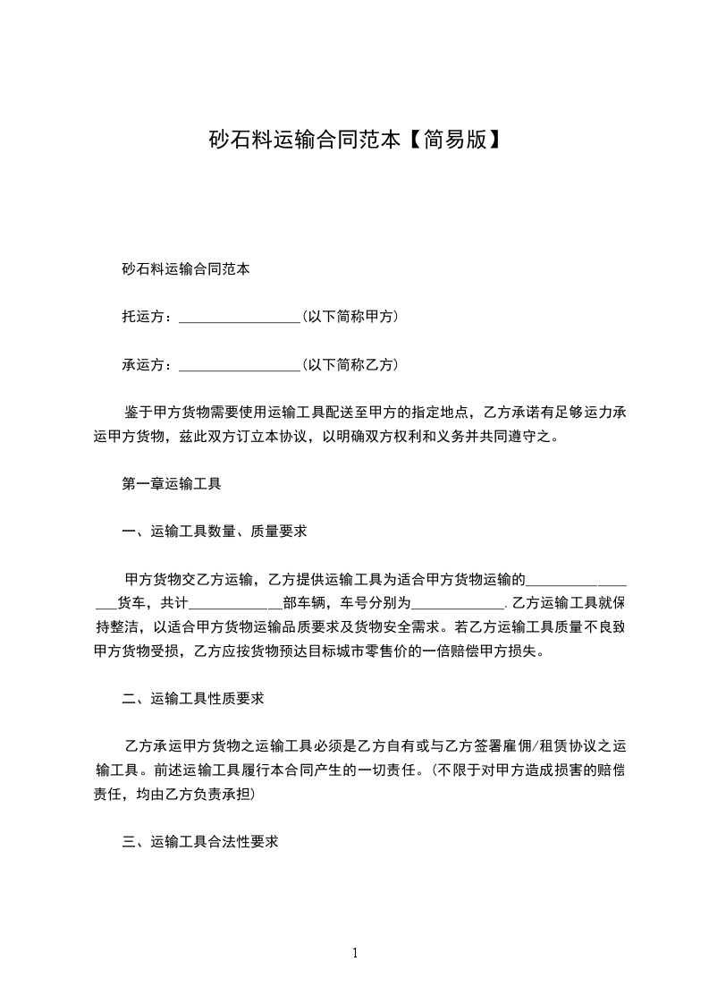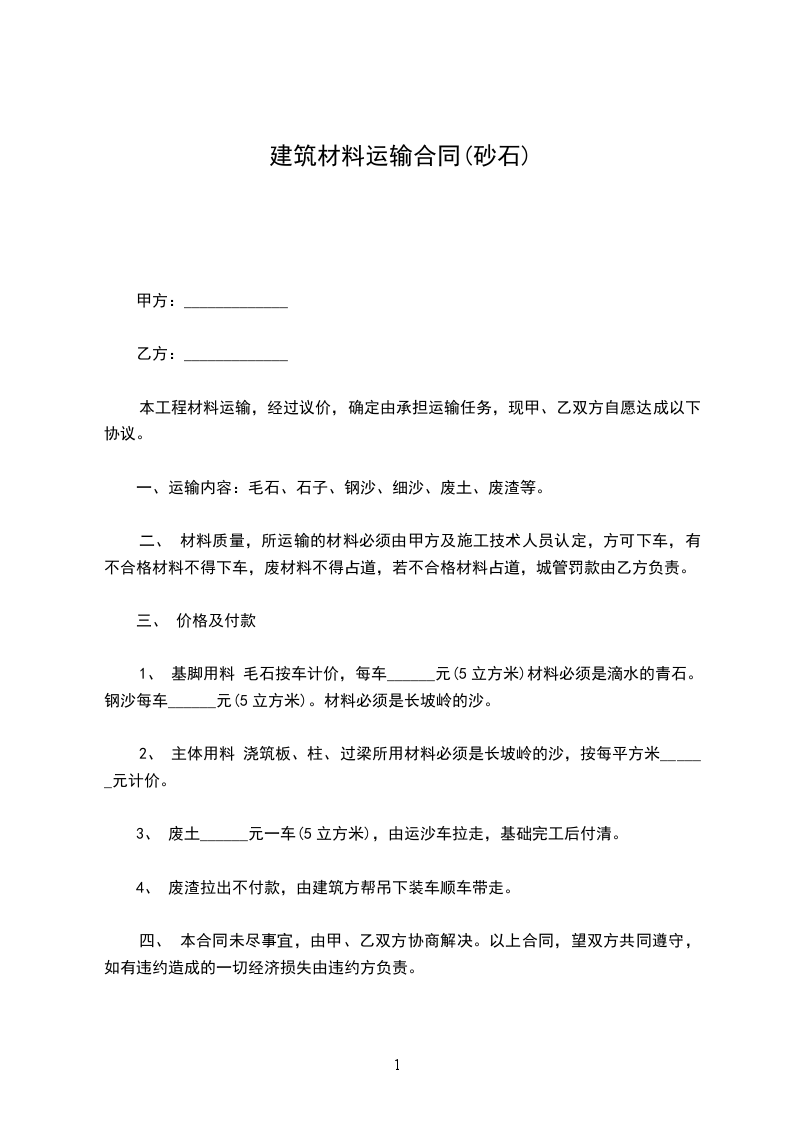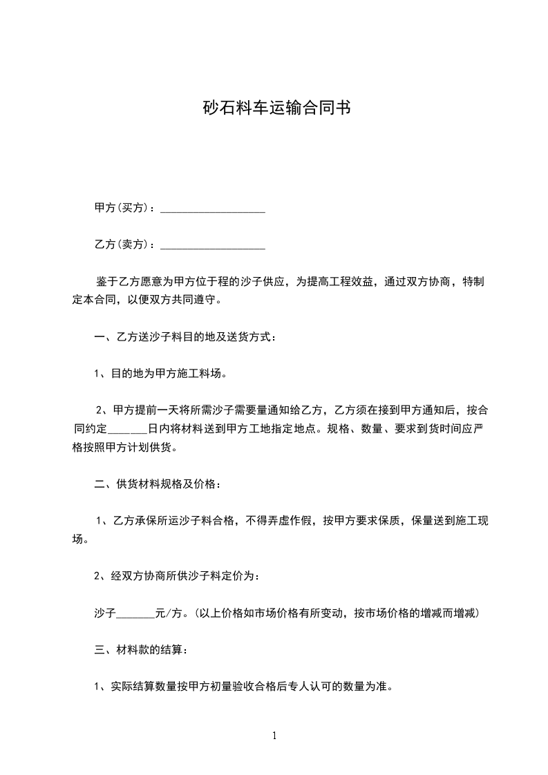 砂石料运输合同范本