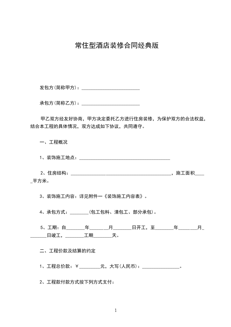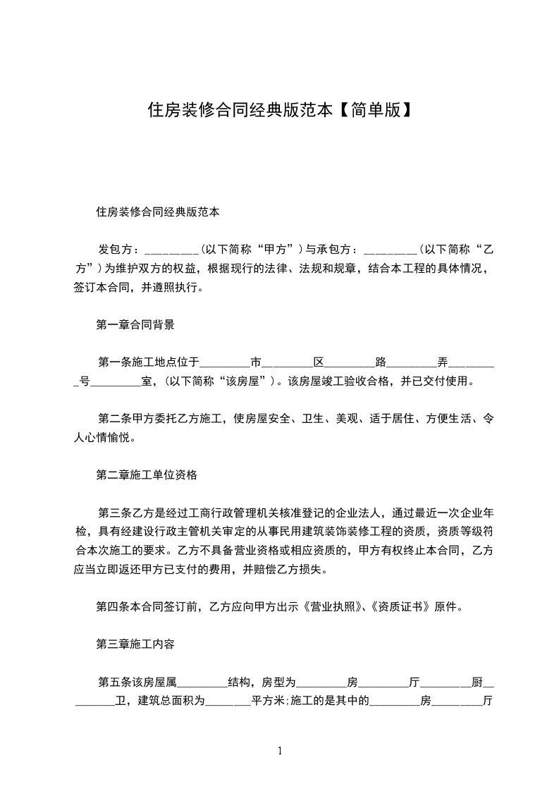 住房装修合同经典版样板
