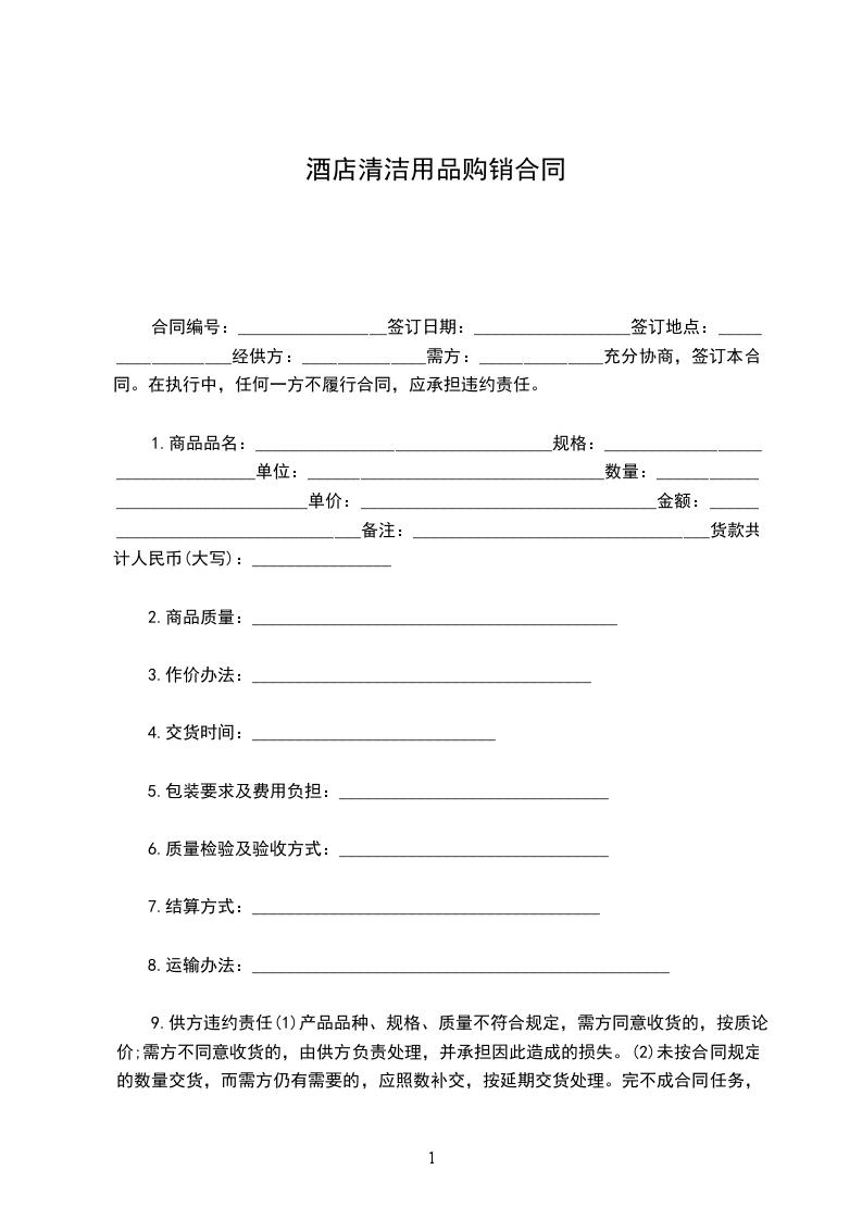 合同编号:_________________签订日期:__________________签订地点:__________________经供方:______________需方:______________充分协商,签订本合同。在执行中,任何一方不履行合同,应承担违约责任。