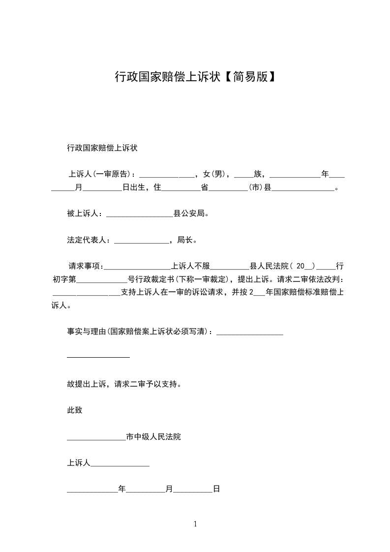 事实与理由(国家赔偿案上诉状必须写清):_________________