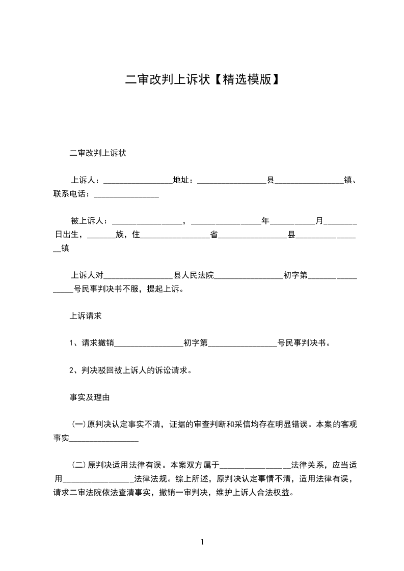 上诉人:_________________地址:_________________县_________________镇、联系电话:________________