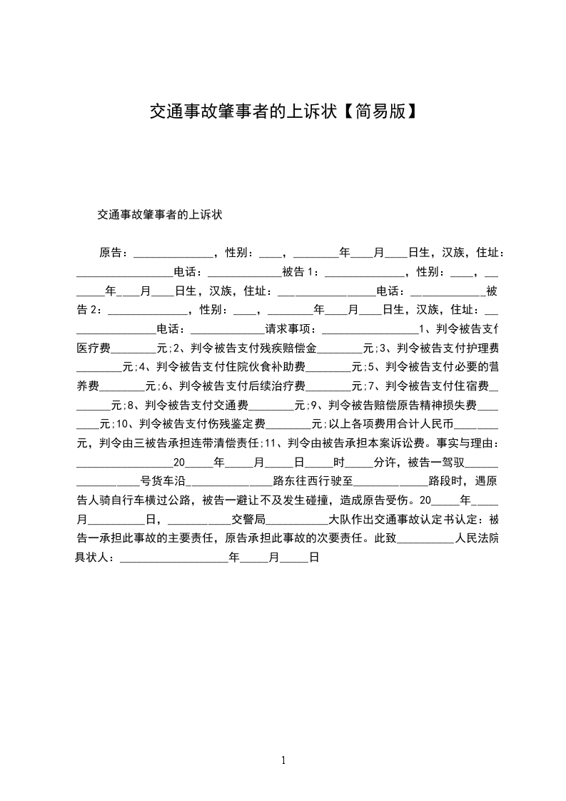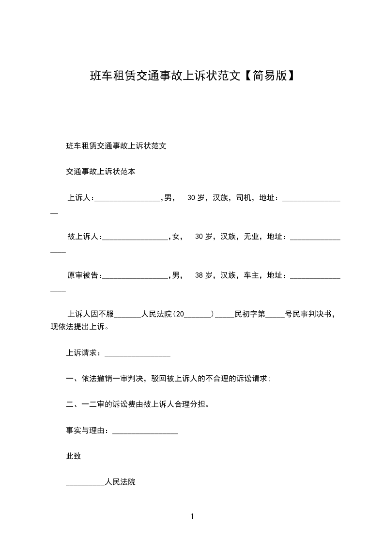 上诉人:_________________,男,30岁,汉族,司机,地址:_________________