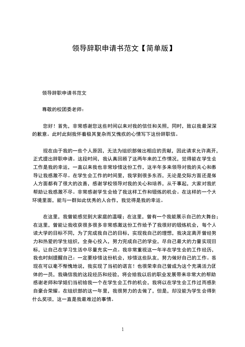 现在由于我的一些个人原因,无法为组织部做出相应的贡献,因此请求允许离开,正式提出辞职申请。这段时间,我认真回顾了这两年来的工作情况,觉得能在学生会工作是我的幸运,一直以来我也非常珍惜这份工作,这半年多来领导对我的关心和教导让我感激不尽。在学生会工作的时间里,我学到很多东西,无论是交际方面还是做人方面都有了很大的改善,感谢学校领导对我的关心和培养,从干事起,大家对我的帮助让我感激不尽。非常感谢学生会给了我这样工作和锻炼的机会。在这样的一个大环境里面,能与一群如此优秀的人合作,我觉得是我的幸运。
