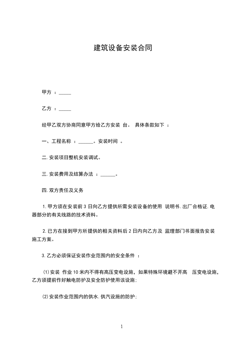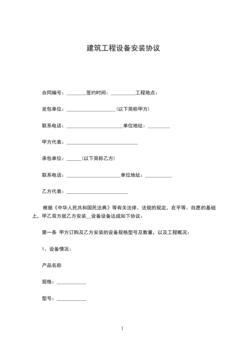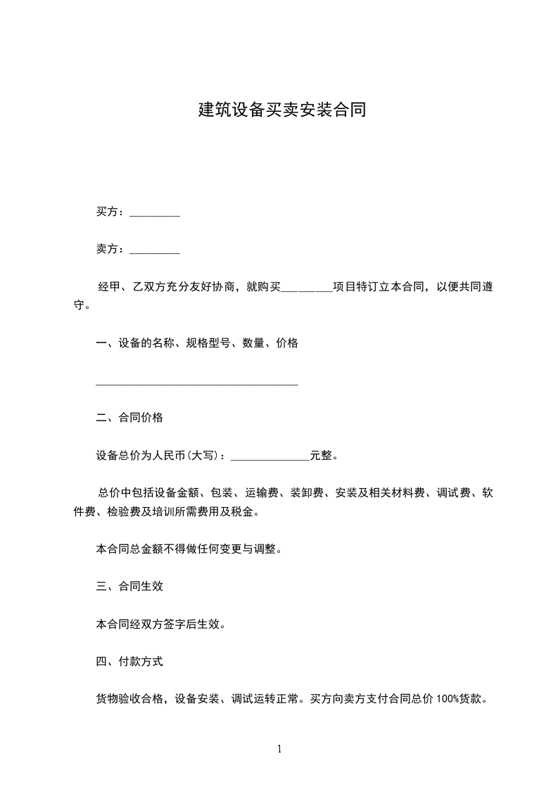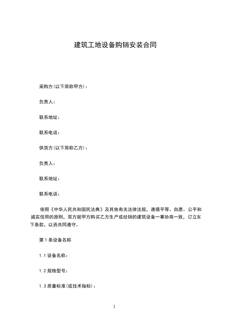 依照《中华人民共和国民法典》及其他有关法律法规,遵循平等、自愿、公平和诚实信用的原则,双方就甲方购买乙方生产或经销的建筑设备一事协商一致,订立如下条款,以资共同遵守。