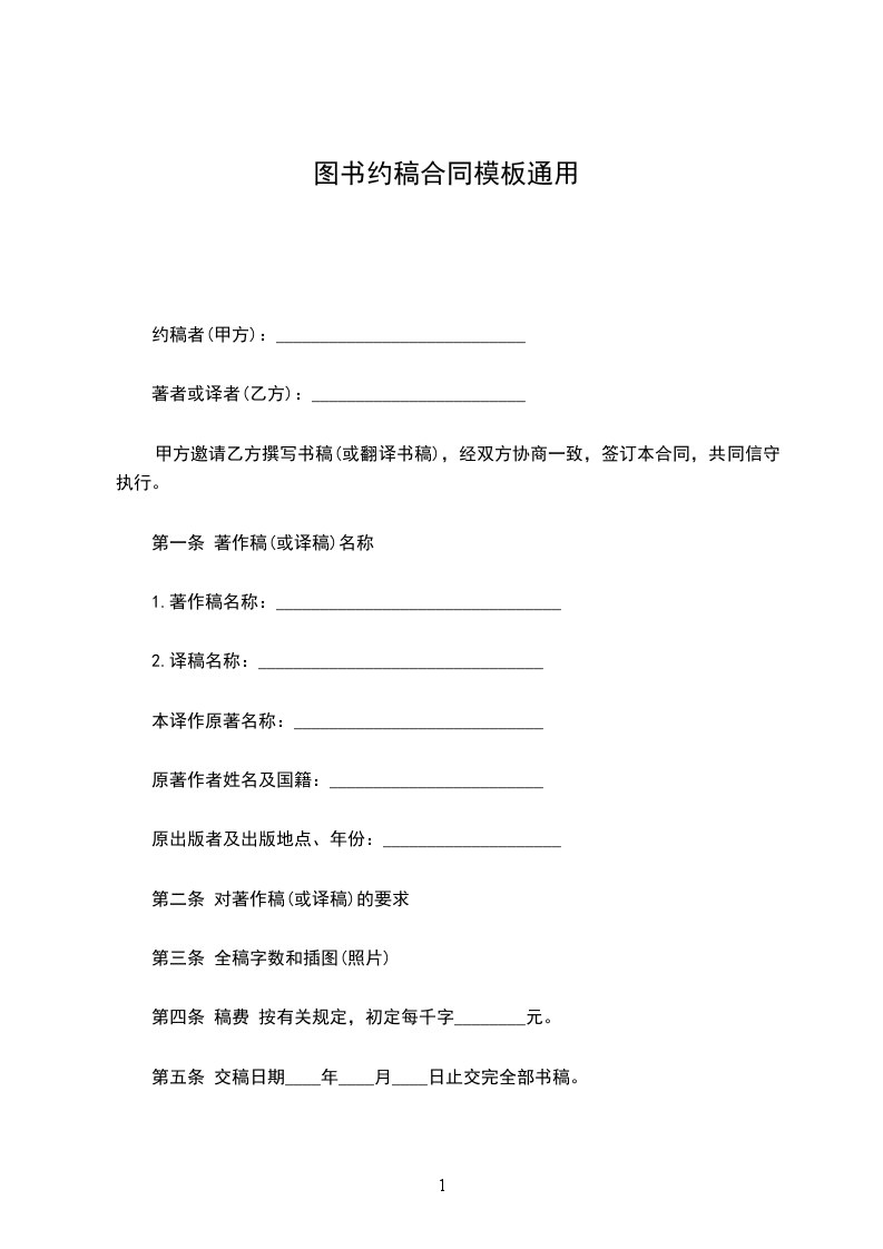 第二条甲方要求乙方编写的内容是______________________________。全稿字数为____万字左右,乙方必须在____年____月____日前交稿。