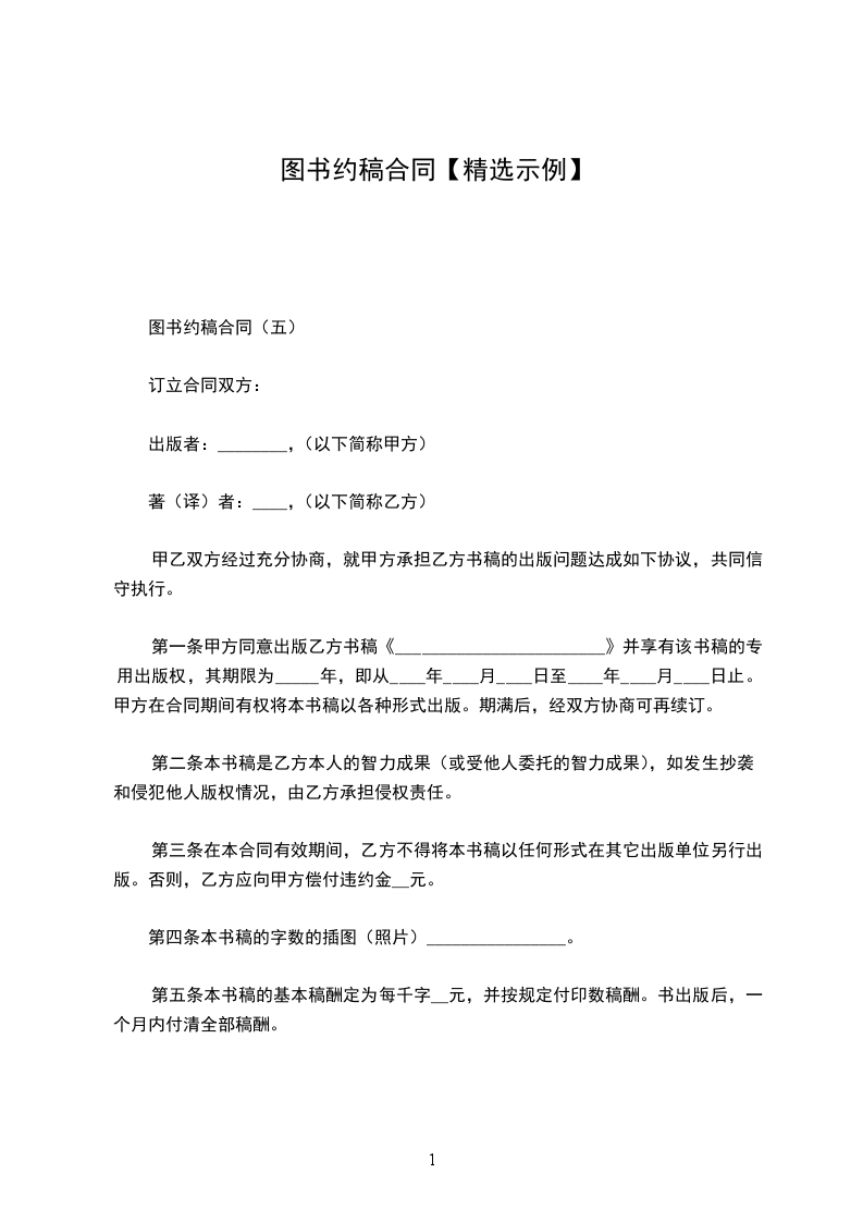 第四条甲方以一次性付酬的方式向乙方支付约稿费,初定每千字____元。
