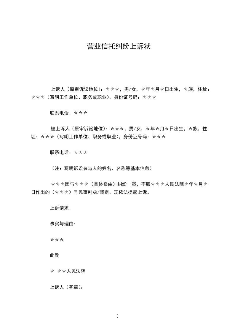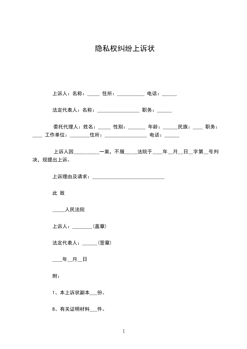 私营企业上诉状范本