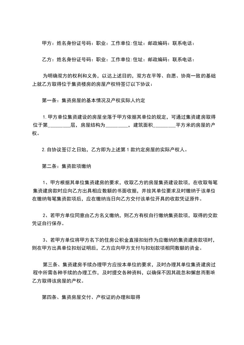 经甲、乙双方共同协商,甲方同意将_______________(__________市__________街_____号)集资套房(_____房_____厅,共__________m2)转让给乙方使用,就转让事宜达成如下协议:_________________