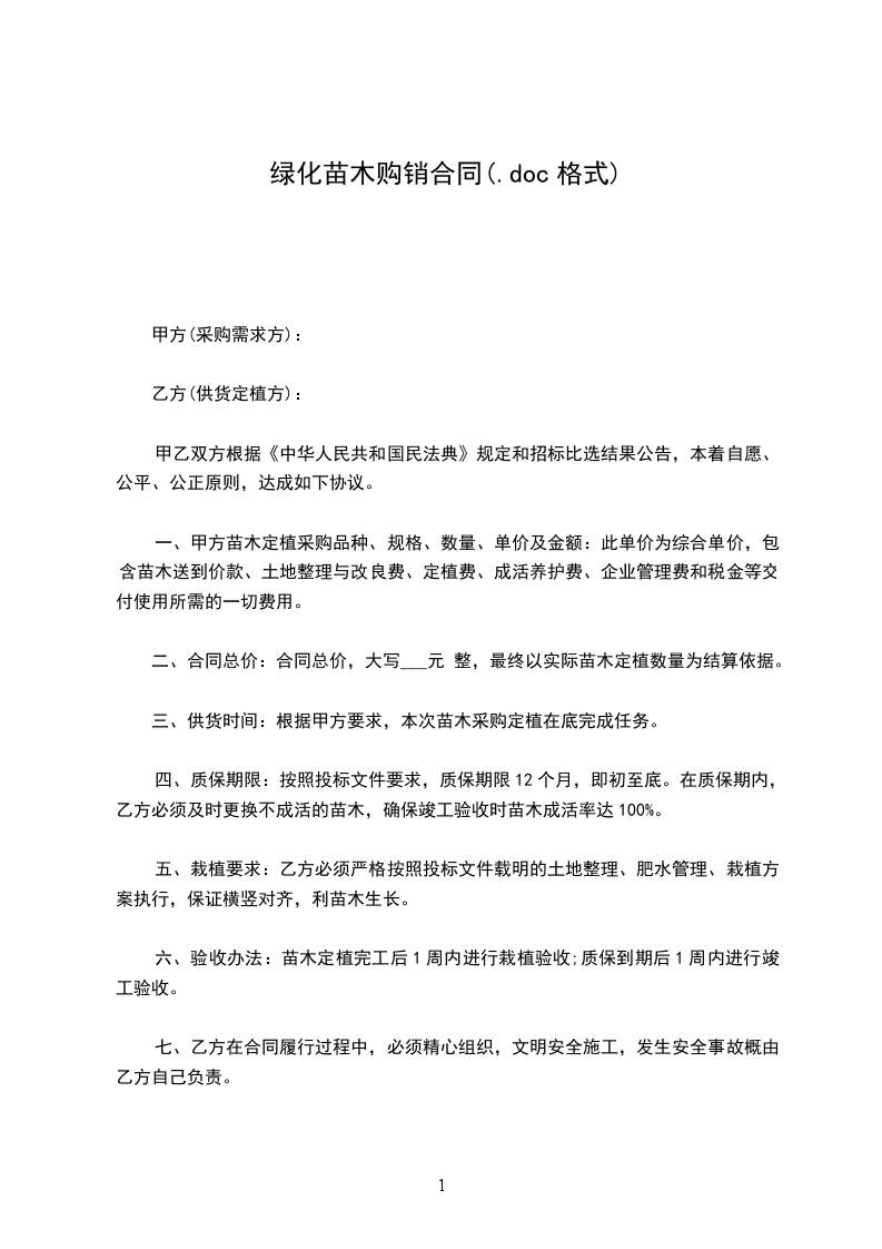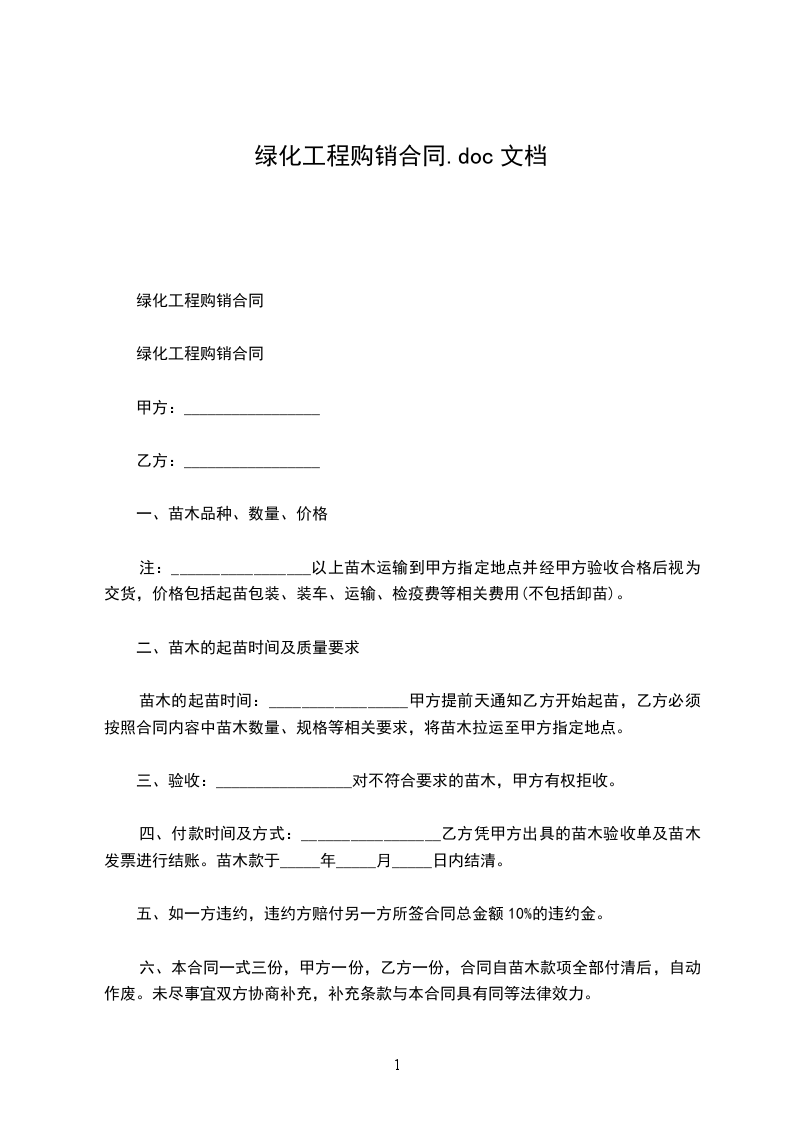 绿化工程购销合同