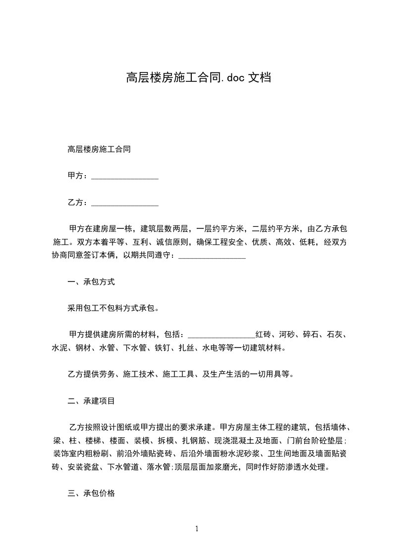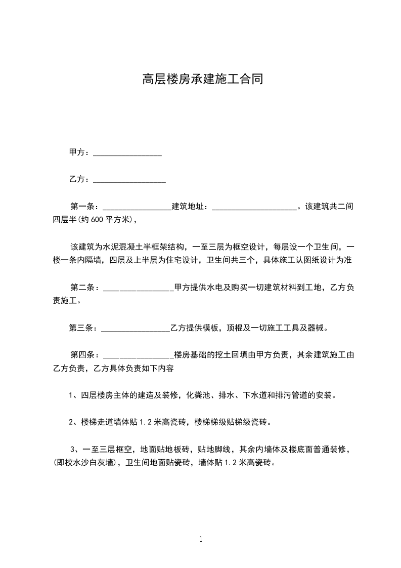 甲方在建房屋一栋,建筑层数两层,一层约平方米,二层约平方米,由乙方承包施工。双方本着平等、互利、诚信原则,确保工程安全、优质、高效、低耗,经双方协商同意签订本俩,以期共同遵守:_________________