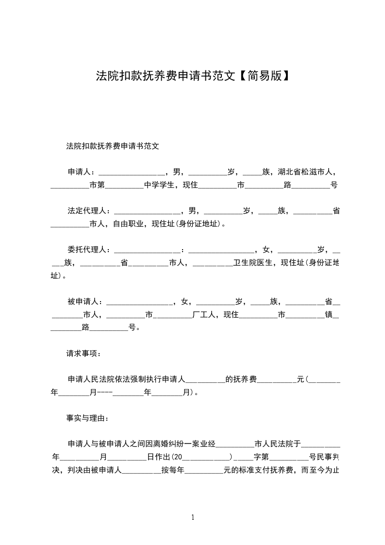 申请人:________________,女,__________岁,_____族,__________省__________县人,__________县第__________中学学生,现住__________县__________路__________号。