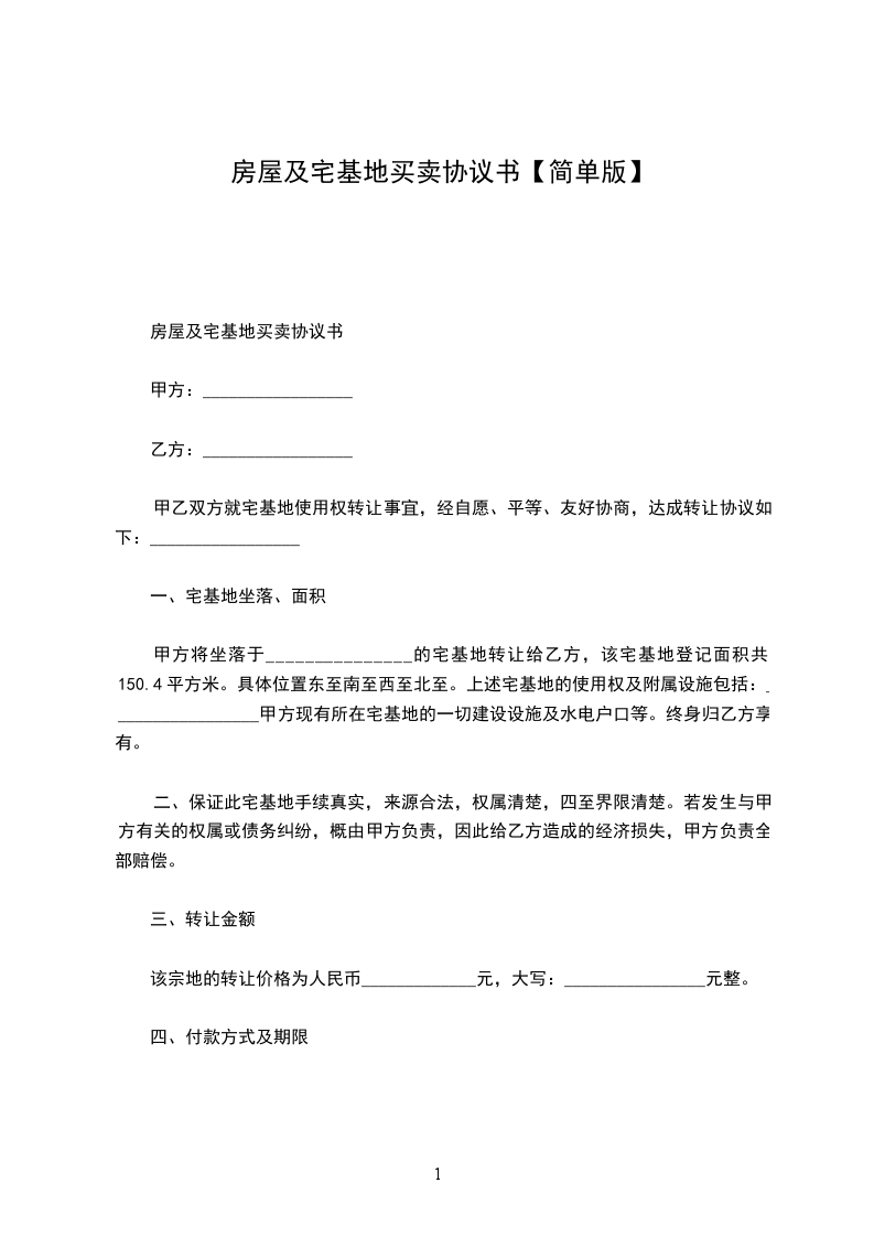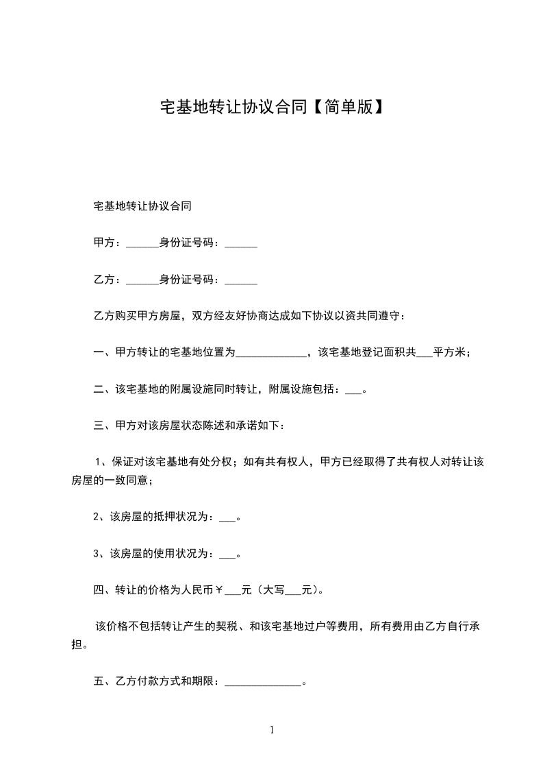 甲方将坐落于_______________的宅基地转让给乙方,该宅基地登记面积共150.4平方米。具体位置东至南至西至北至。上述宅基地的使用权及附属设施包括:_________________甲方现有所在宅基地的一切建设设施及水电户口等。终身归乙方享有。