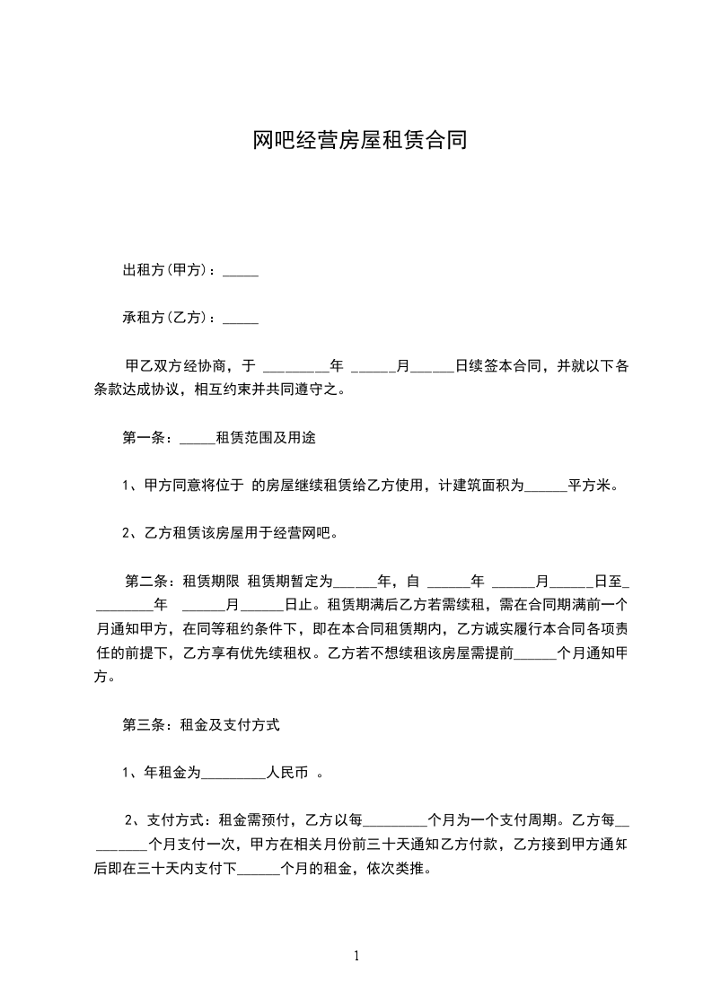 网吧房屋租赁合同范本