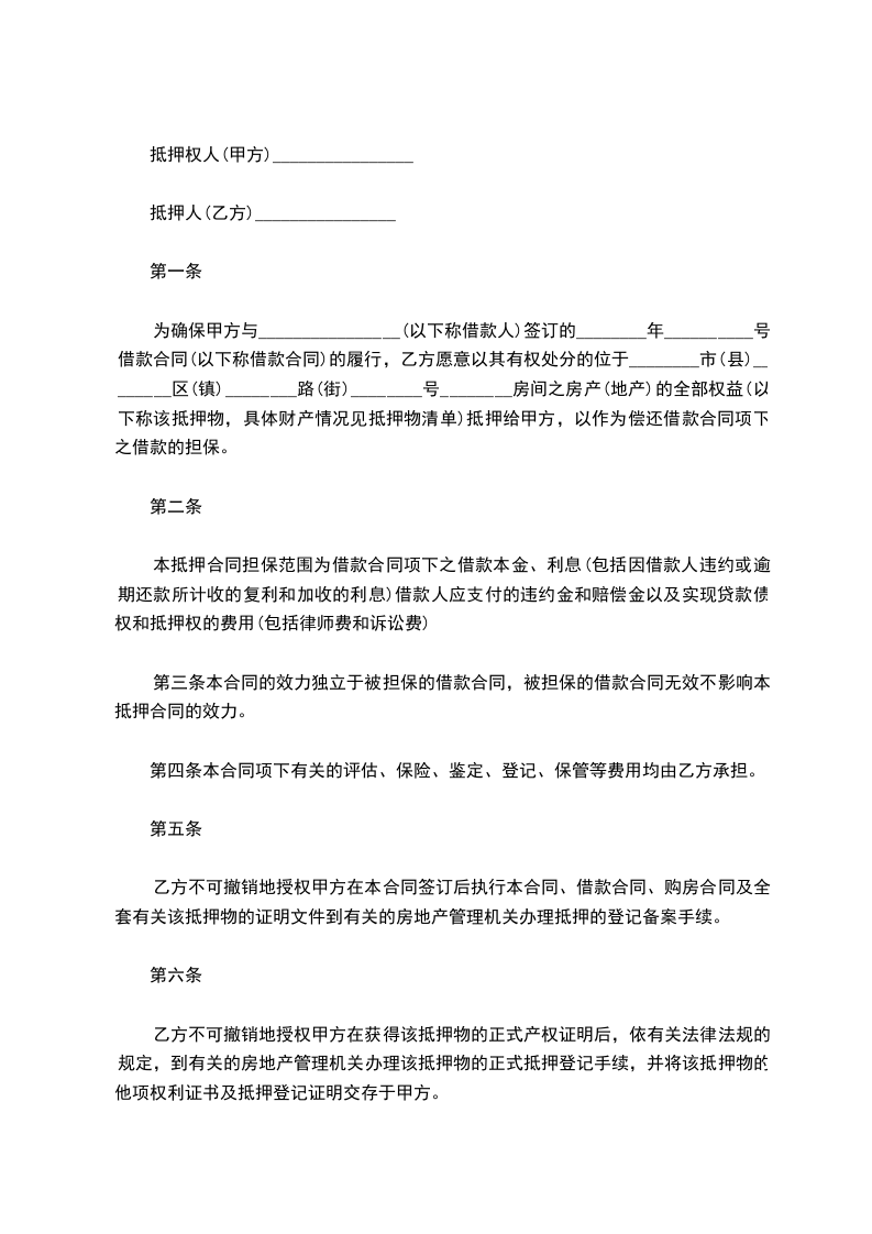 乙方不可撤销地授权甲方在本合同签订后执行本合同、借款合同、购房合同及全套有关该抵押物的证明文件到有关的房地产管理机关办理抵押的登记备案手续。